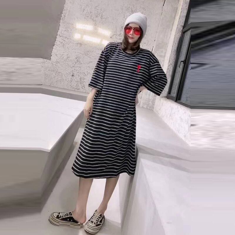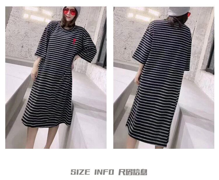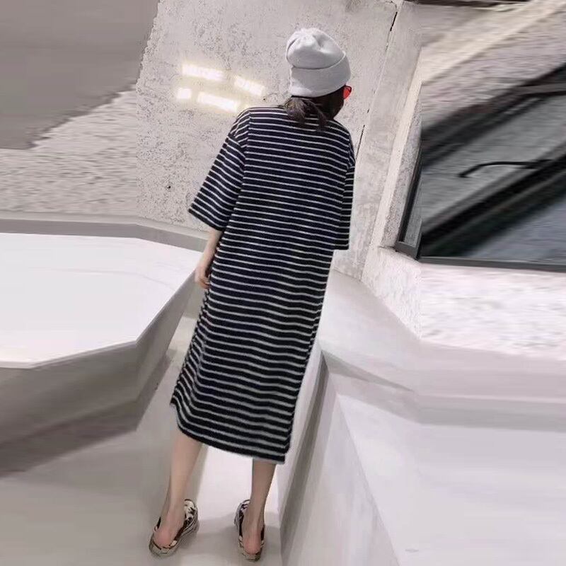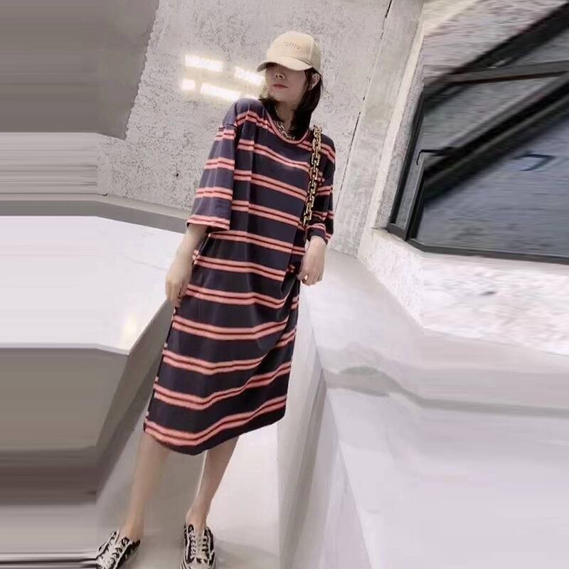 2020秋の新作スタイルは薄く、肉ミドル丈のラウンドネックの大きいサイズのドレス脂肪MMストライプTシャツセータースカートトレンド ミックスインファッション78134822026