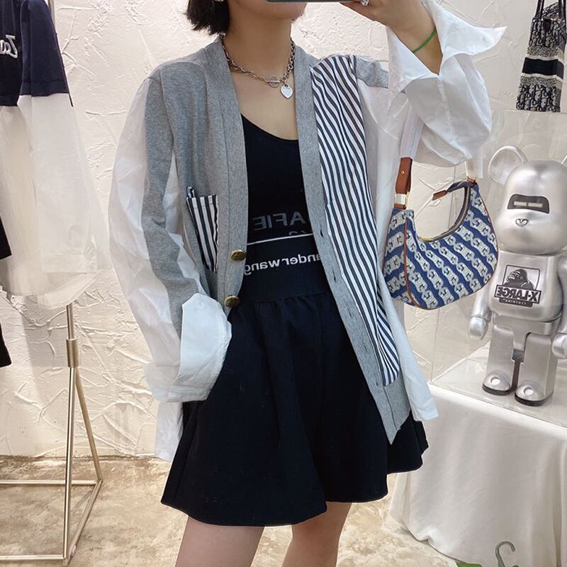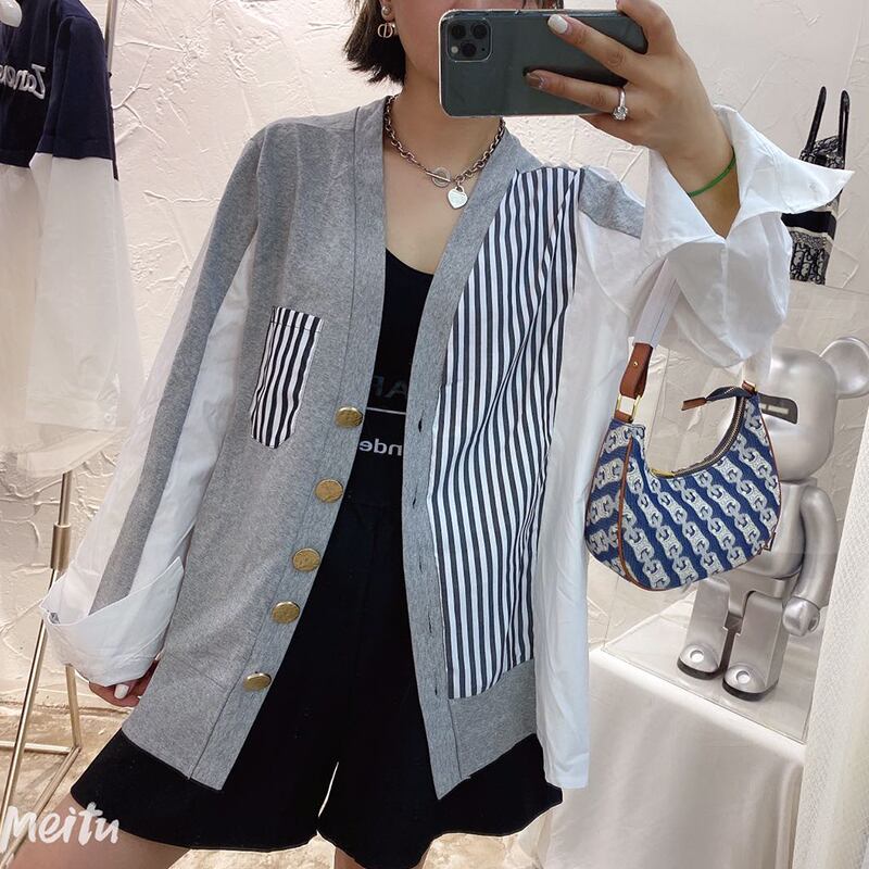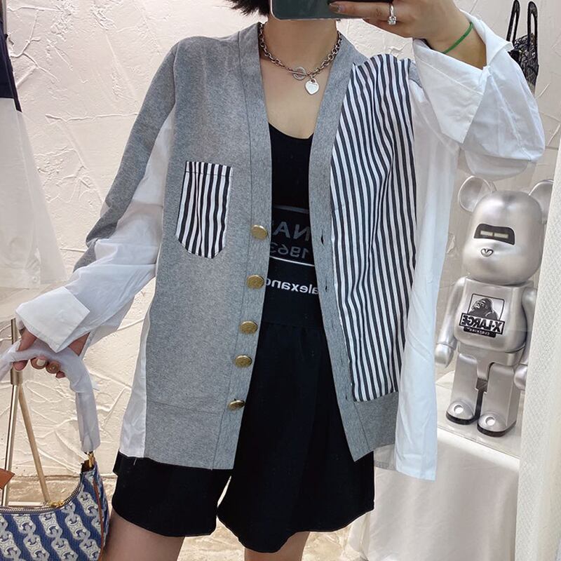 ファットmmカジュアルストライプブラウス2020秋の新しいプラスサイズの女性のルーズで薄い野生のカーディガンジャケット ミックスインファッション9113773018
