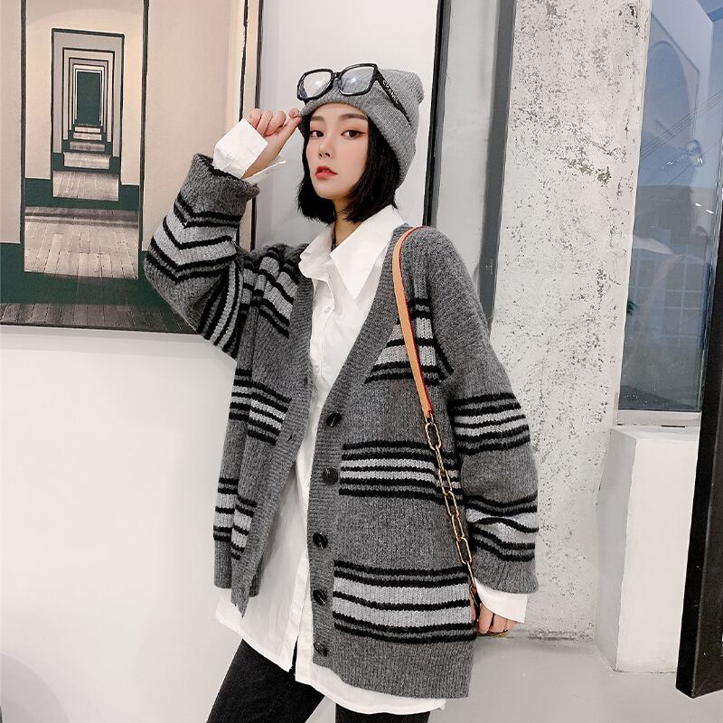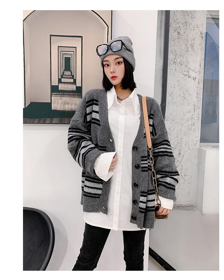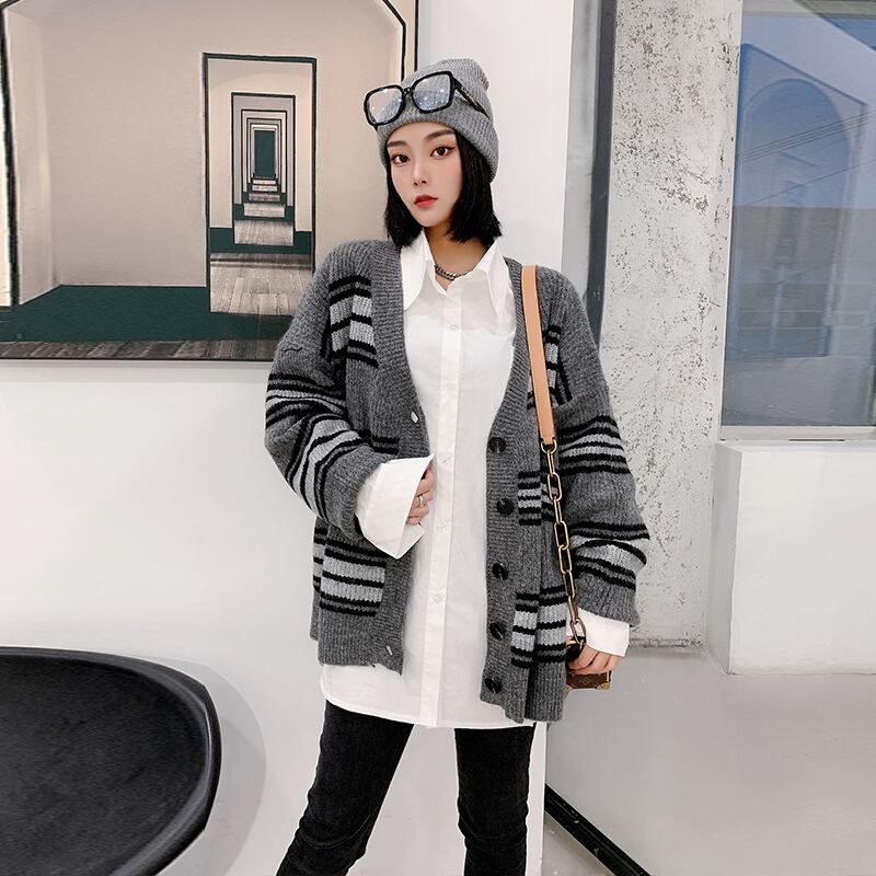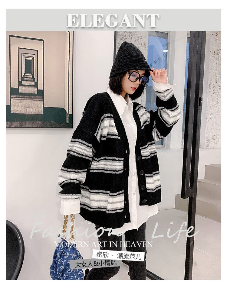 オータムセーター コート ルーズニットカーディガン薄手 大きめサイズ 秋物 ミックスインファッション34515799570