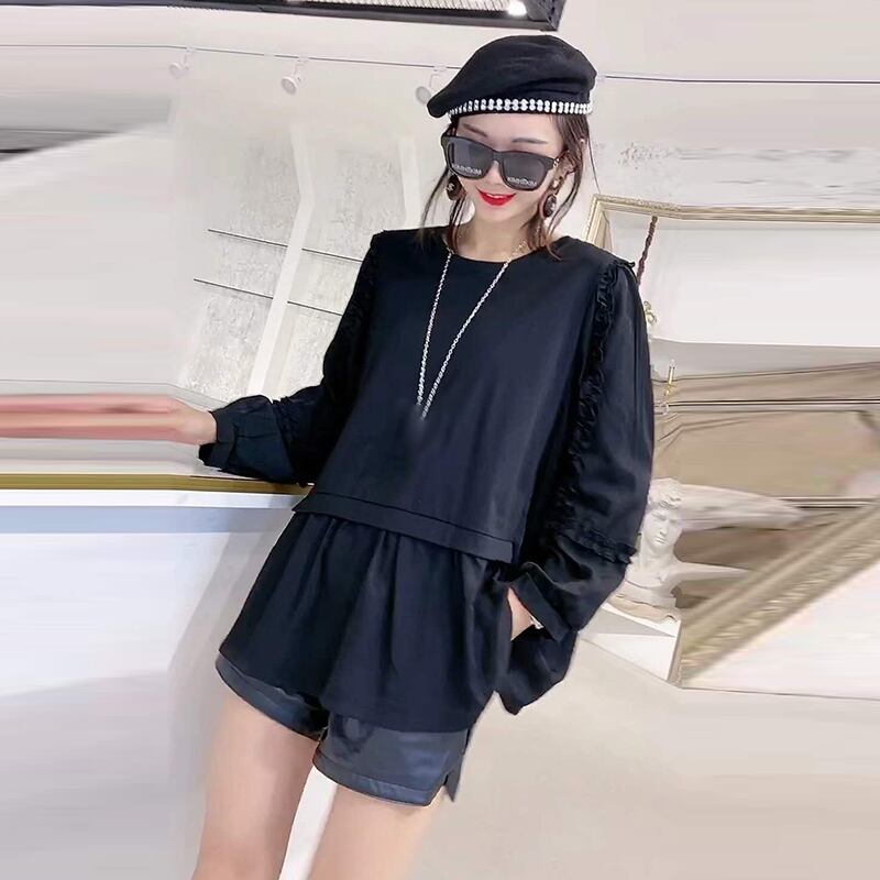 Tシャツ オータムドレス ルーズスリムトップス ロング 大きめサイズ 秋物 ミックスインファッション34112081028