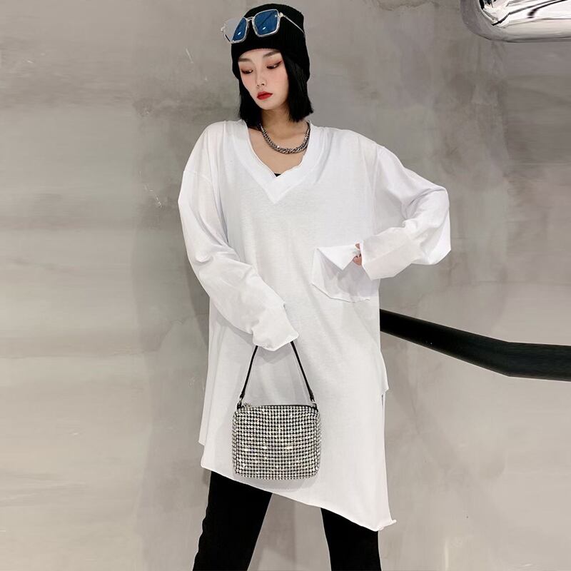 オータムTシャツ ルーズスリム ロング 大きめサイズ 秋物 ミックスインファッション8404992211