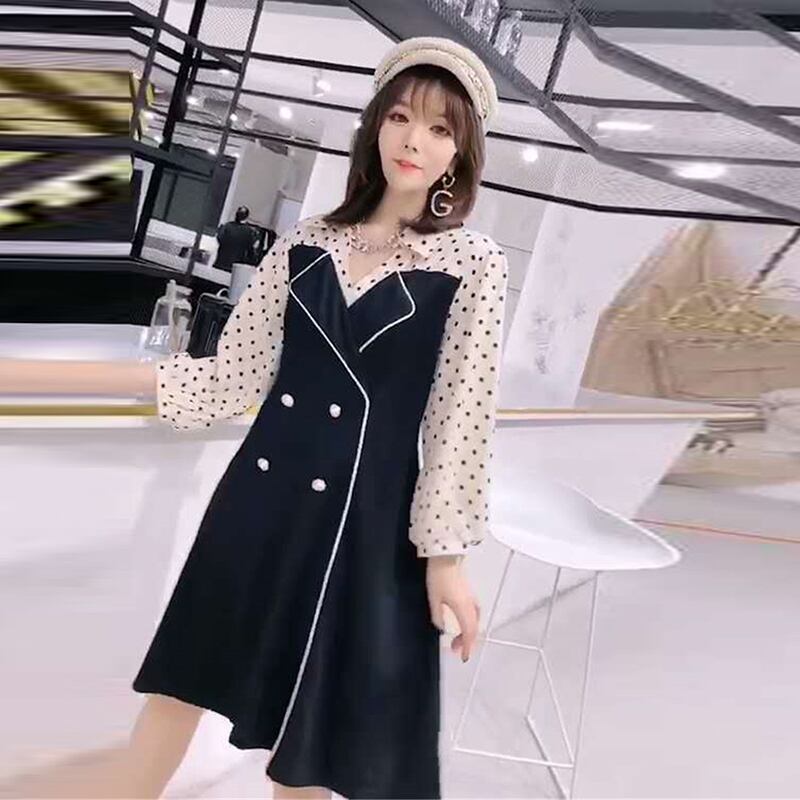 ドレス オータムルーズウェスト水玉スカート 大きめサイズ 秋物 ミックスインファッション63941159415