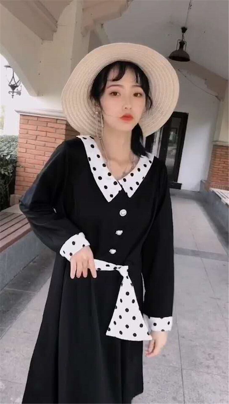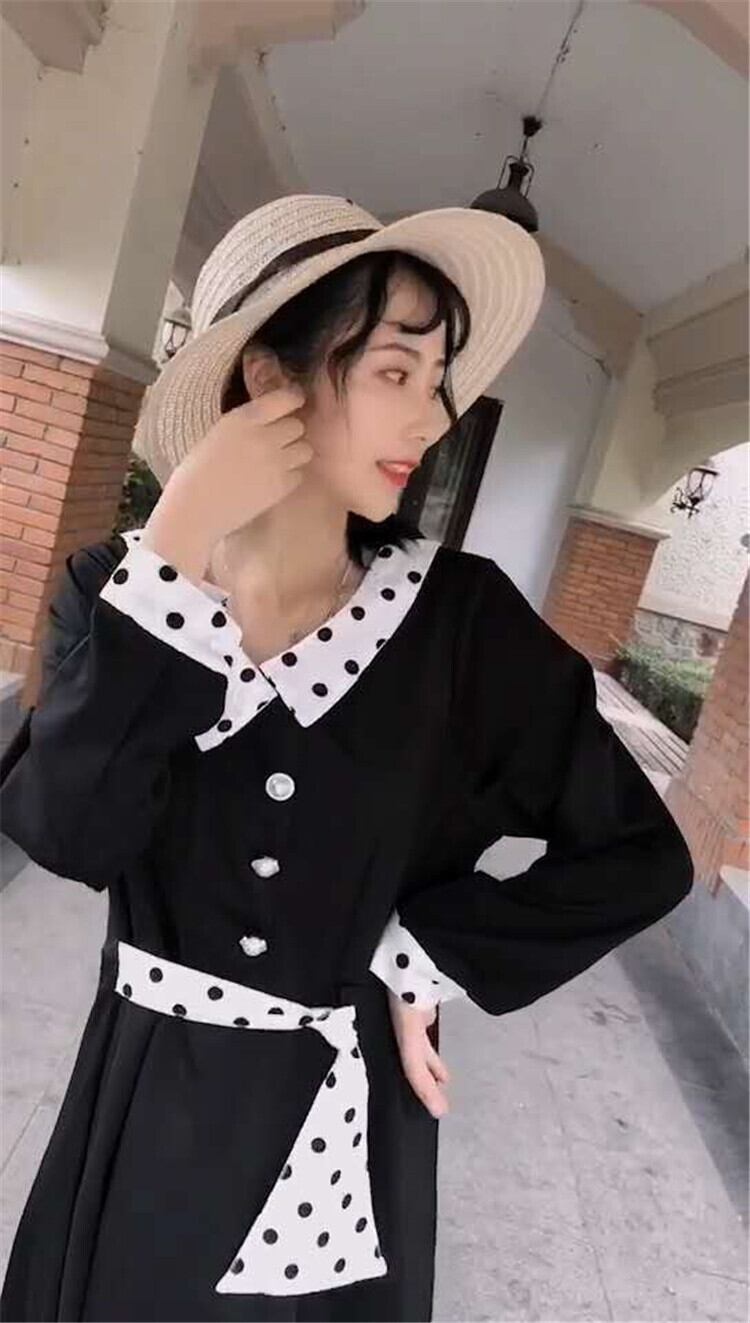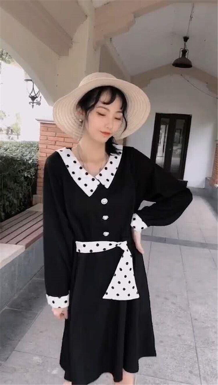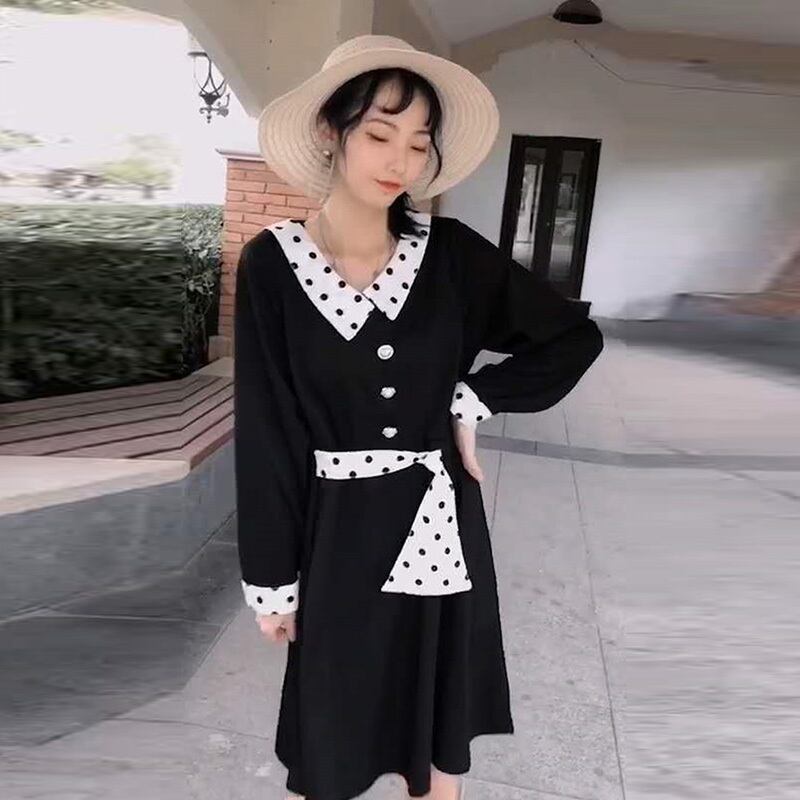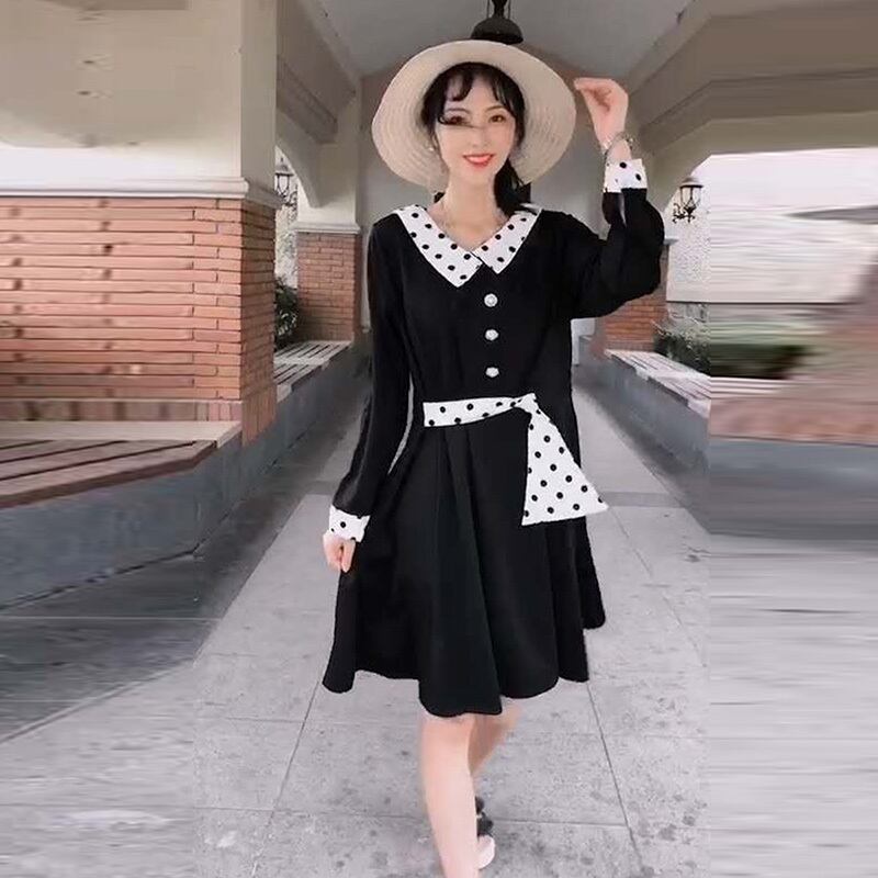 プラスサイズの女性の腰と薄いデザインのファットmmブラックドレス、水玉スカート、新しい秋2020 ミックスインファッション46522455644