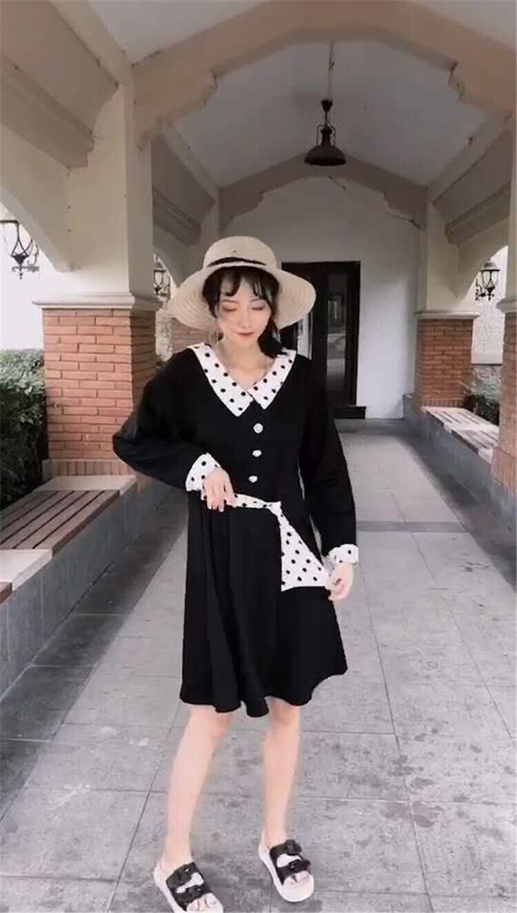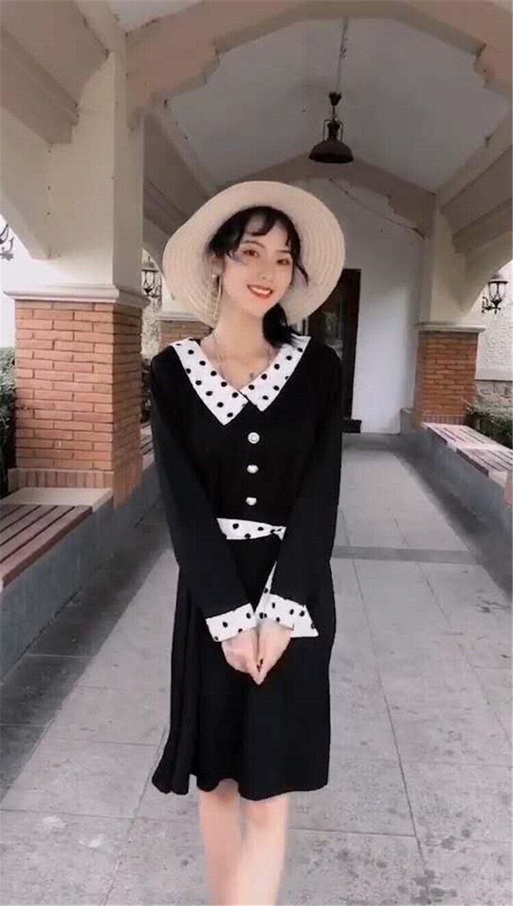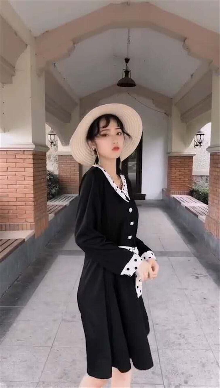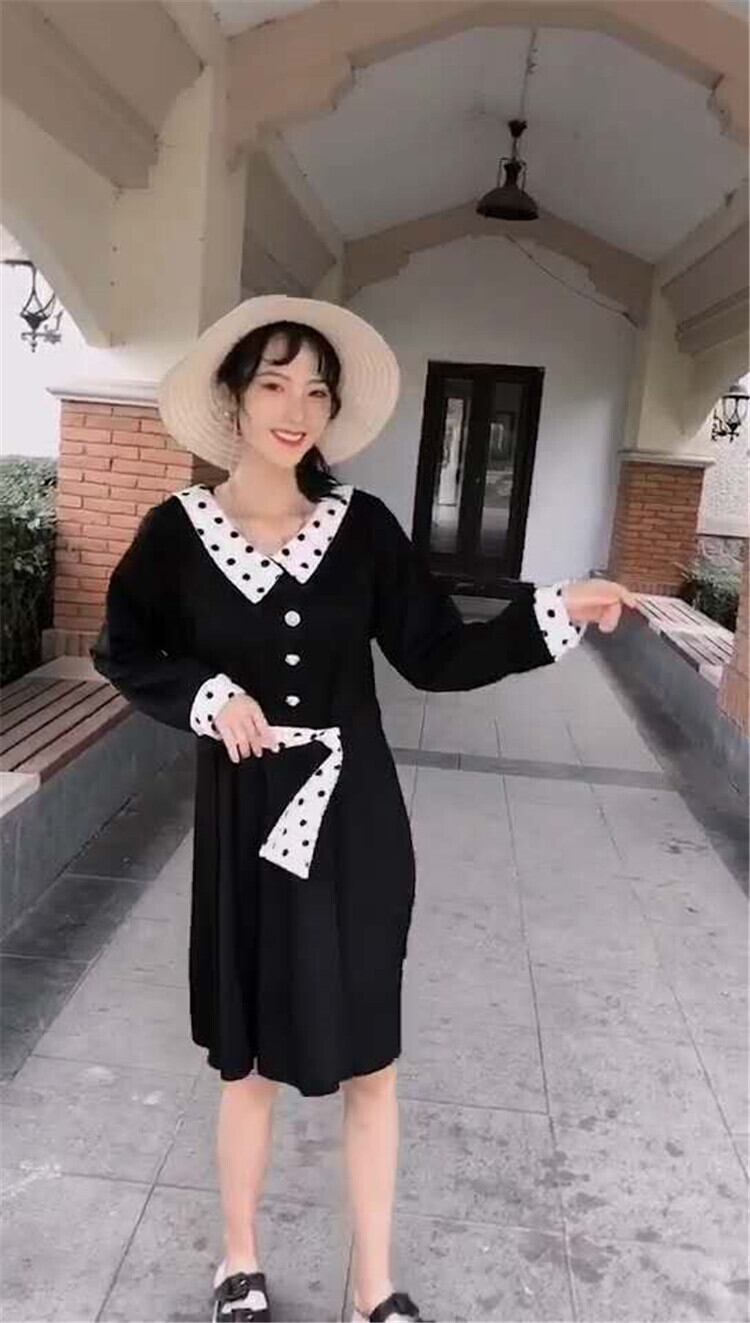 プラスサイズの女性の腰と薄いデザインのファットmmブラックドレス、水玉スカート、新しい秋2020 ミックスインファッション46522455644