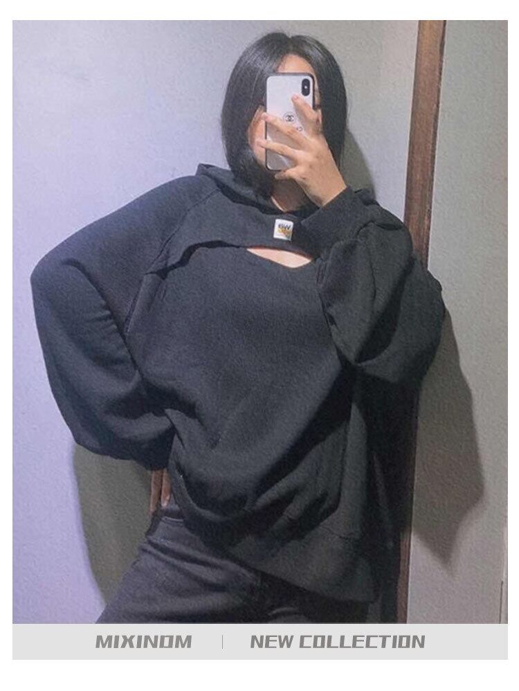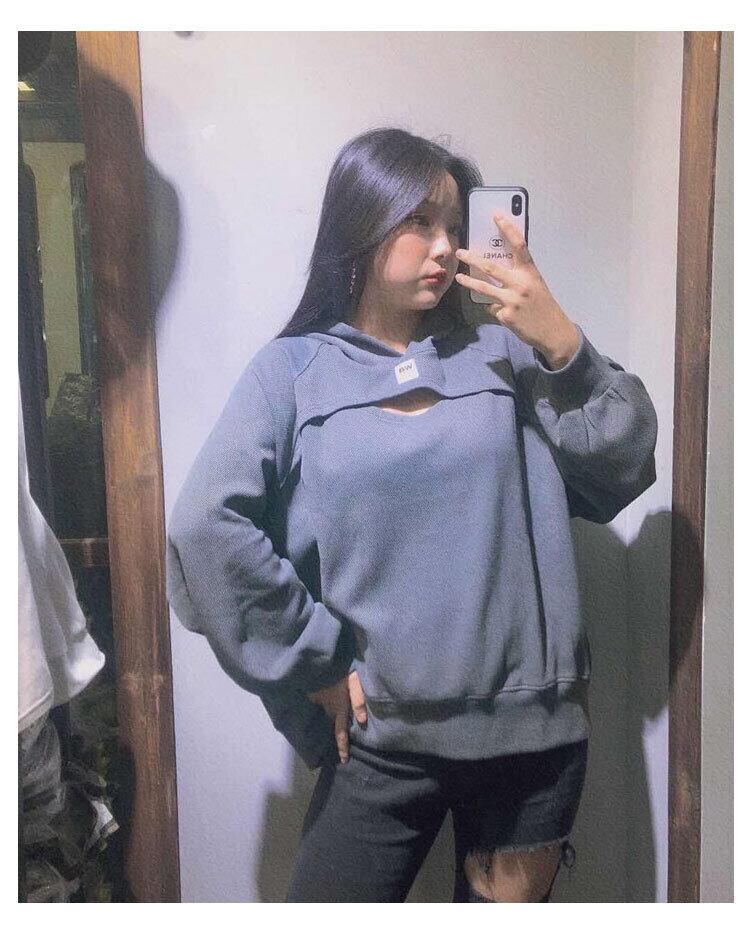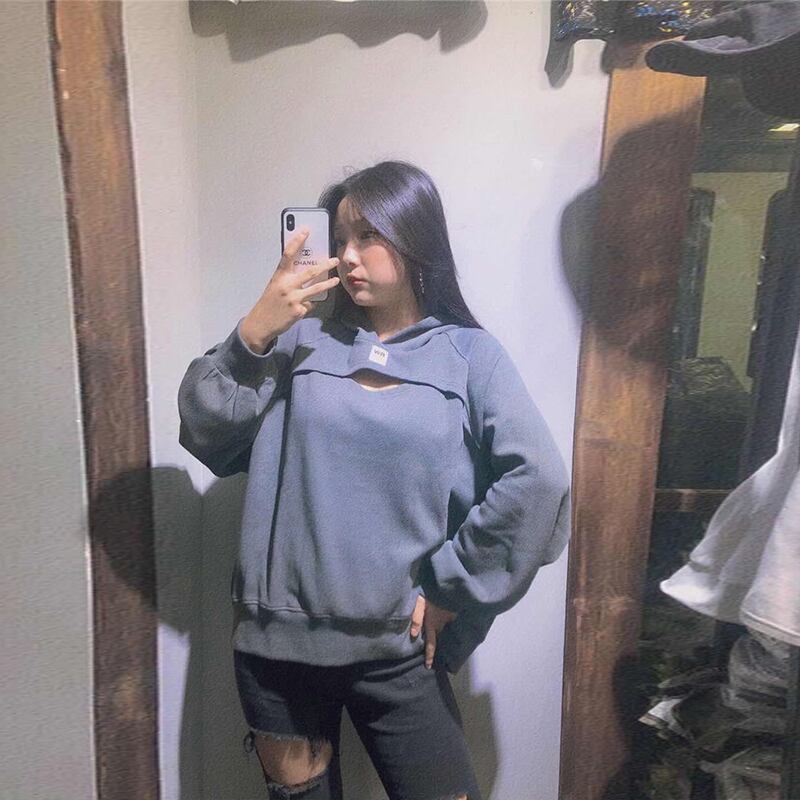 2020秋の新プラスサイズの女性の長袖スリムフード付きの襟のスケミングトップファットシスター年齢削減Tシャツ ミックスインファッション53898775488
