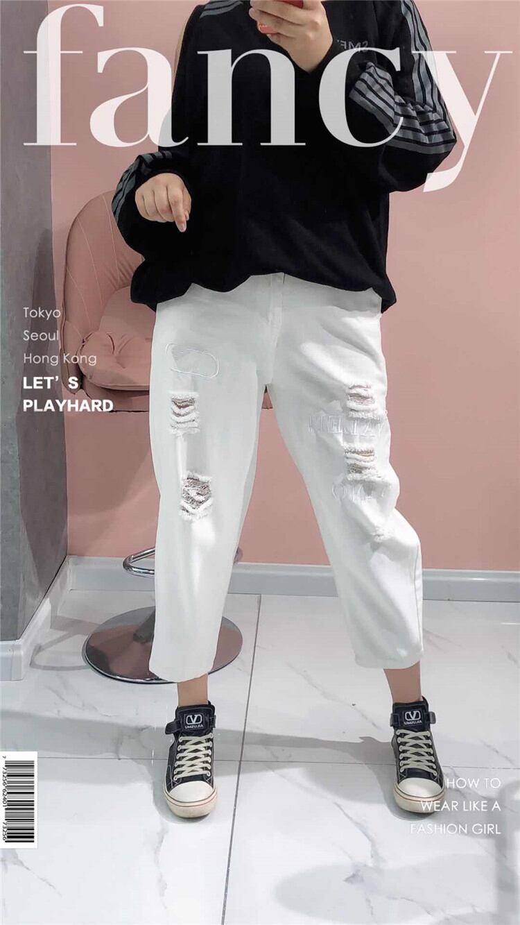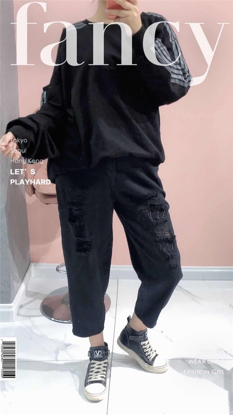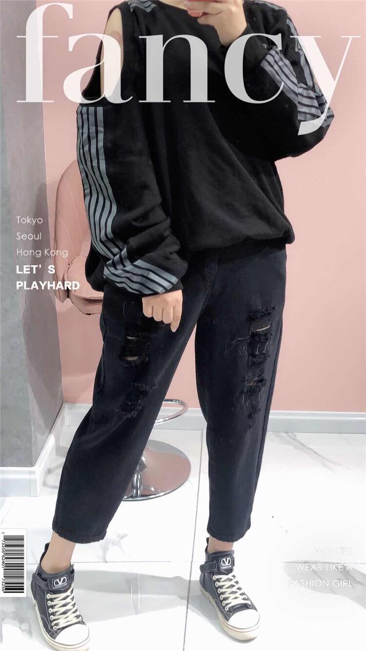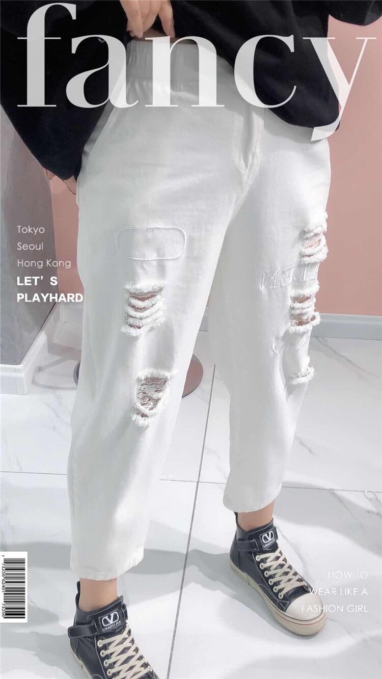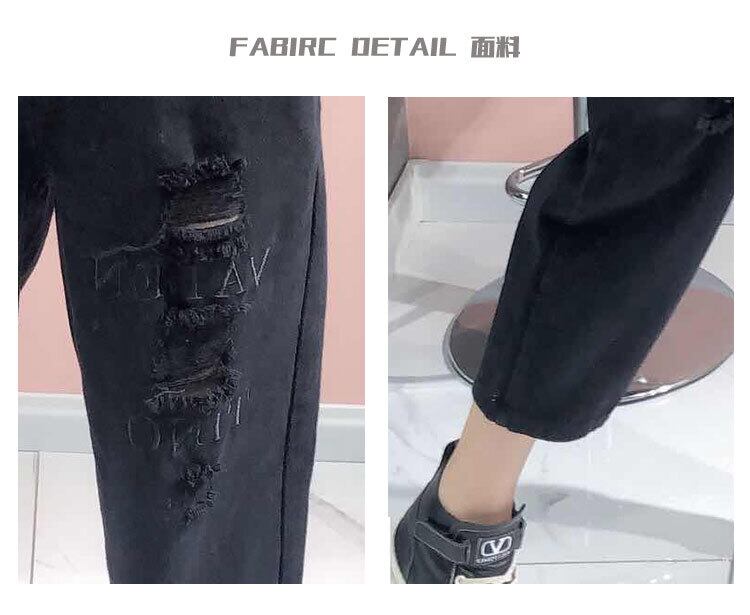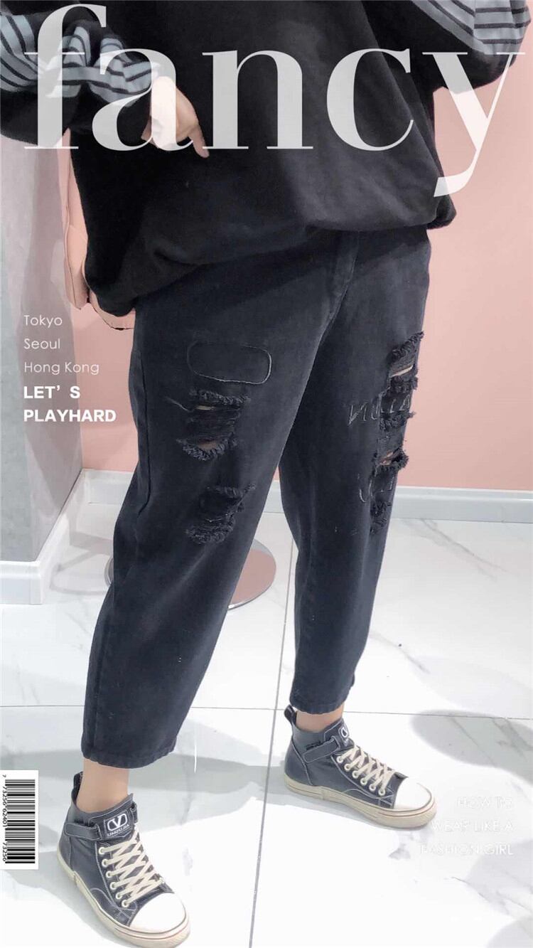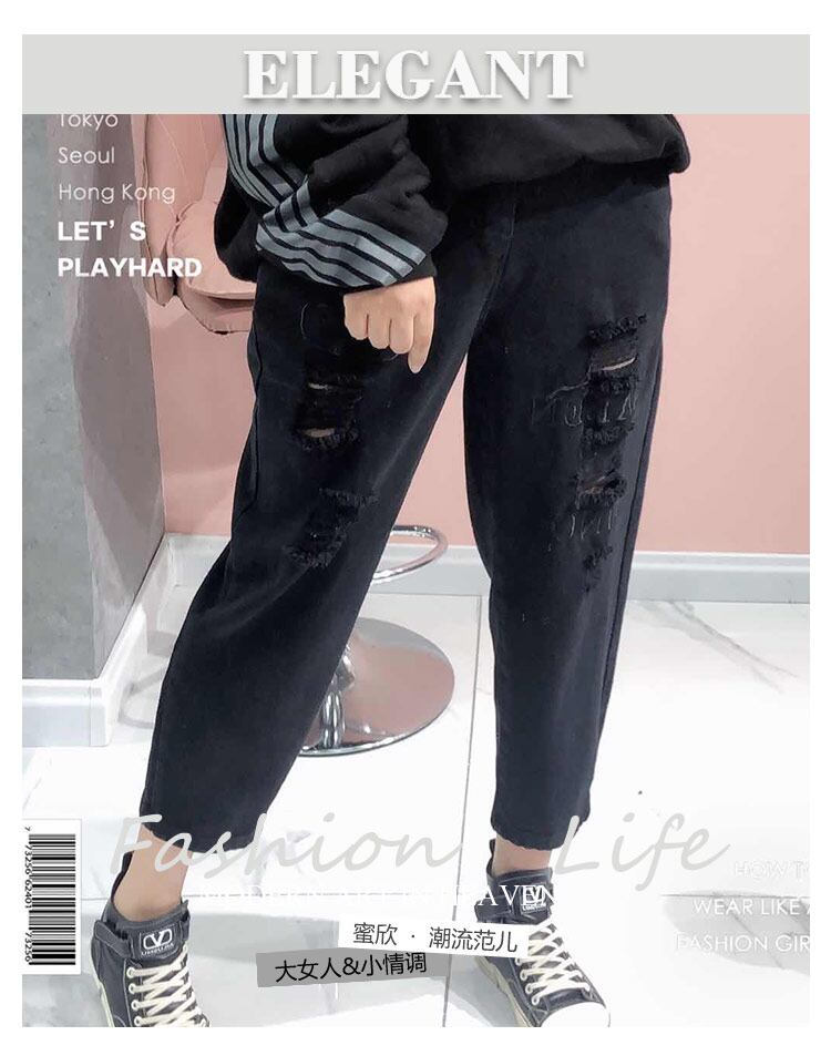 プラスサイズの女性の秋の服新しい脂肪姉妹mm薄い西洋風穴手紙ジーンズ股腿太い女性パンツ ミックスインファッション88026949875