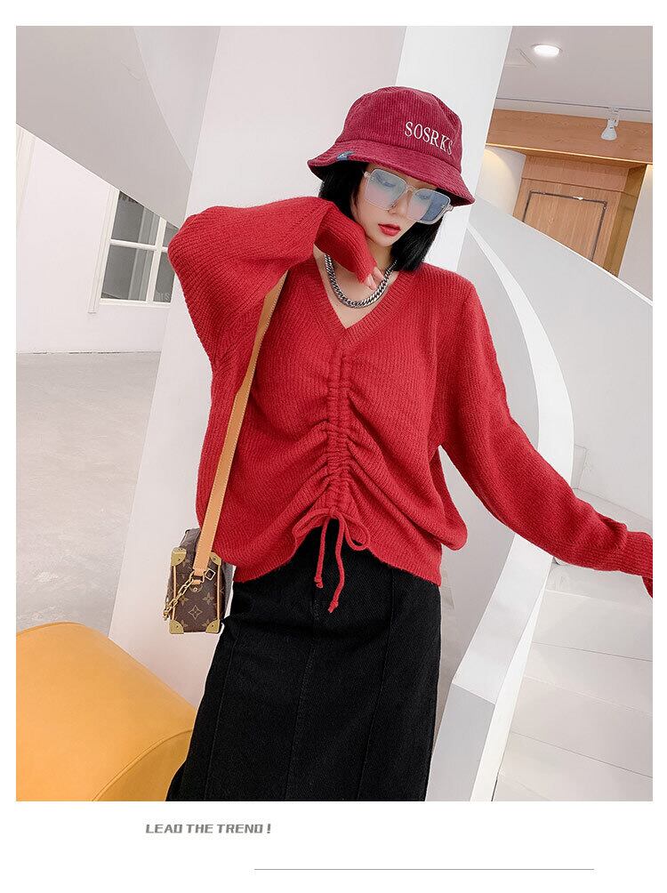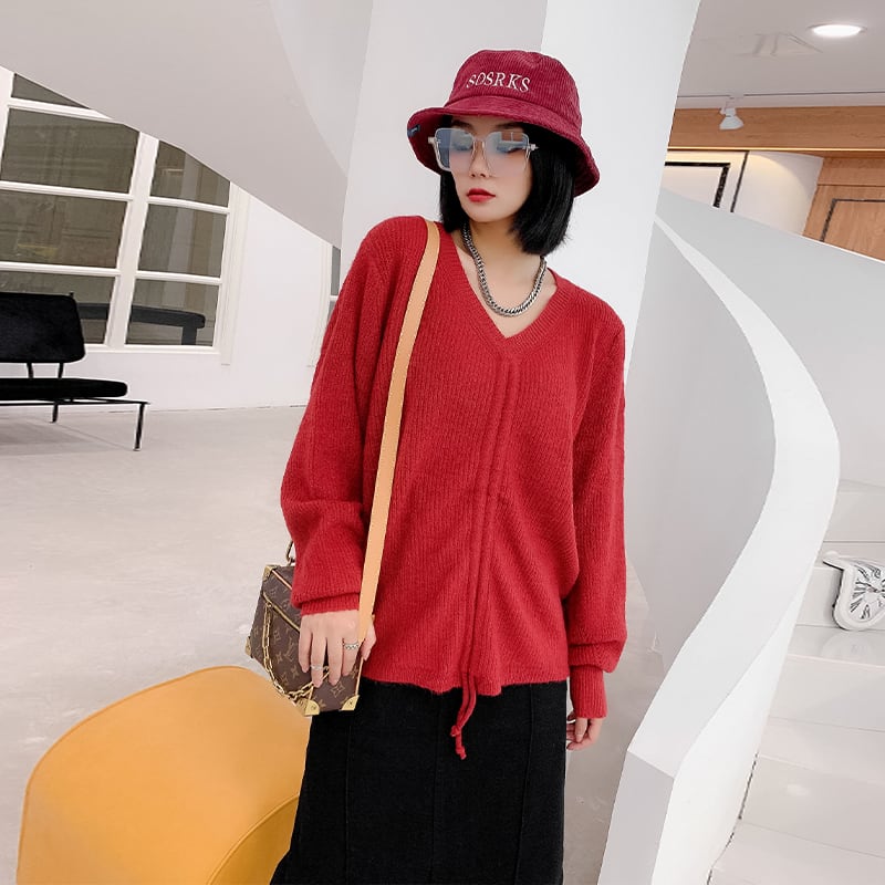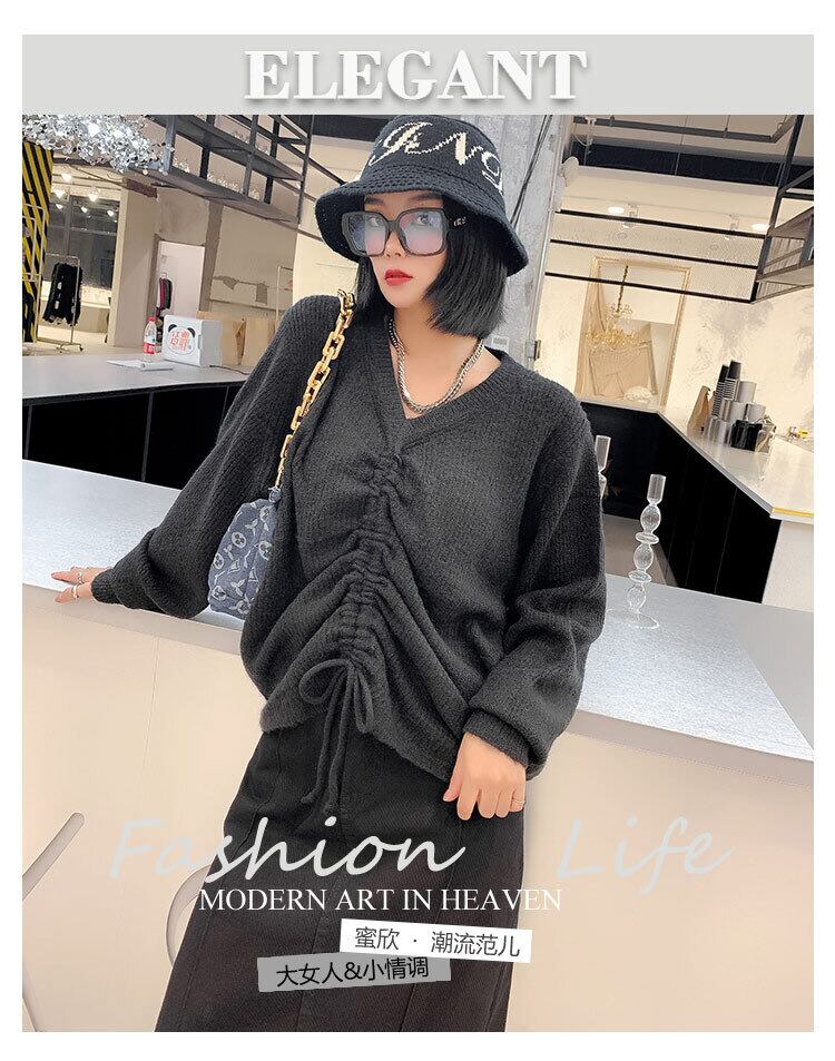 セーター長袖Tシャツ女性の秋の服プラスサイズの女性の服2020新しいドローストリングファットMMのトップは薄いセーターです ミックスインファッション71478969635
