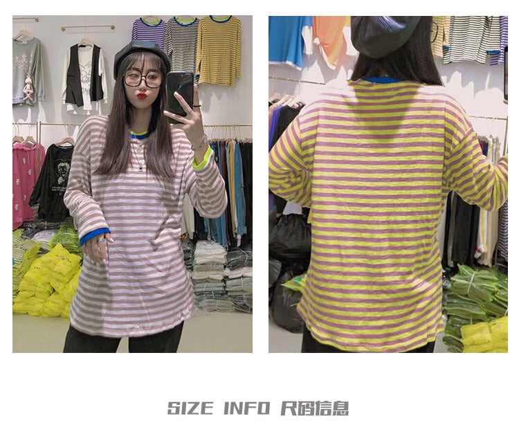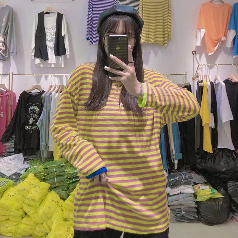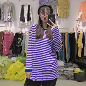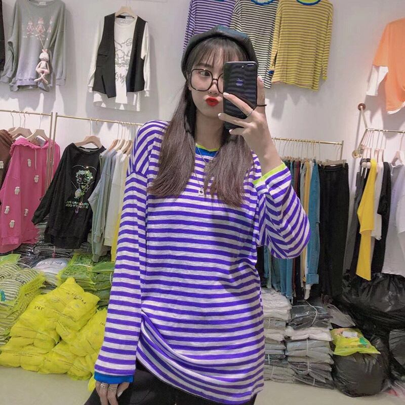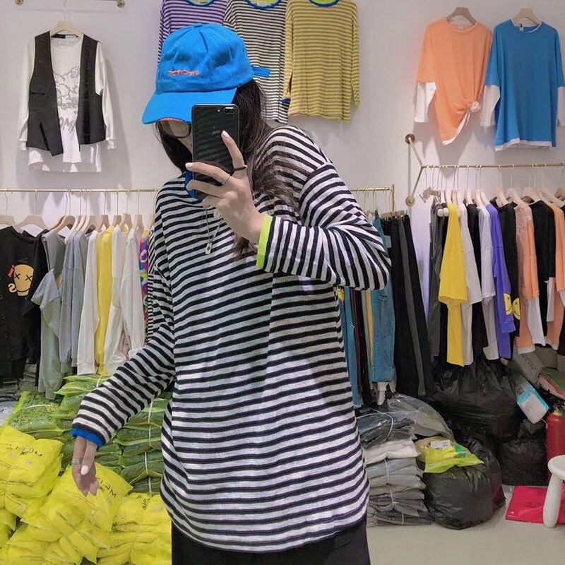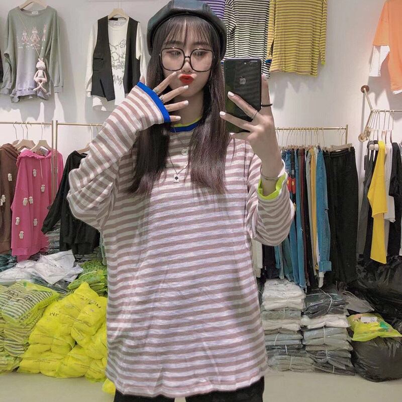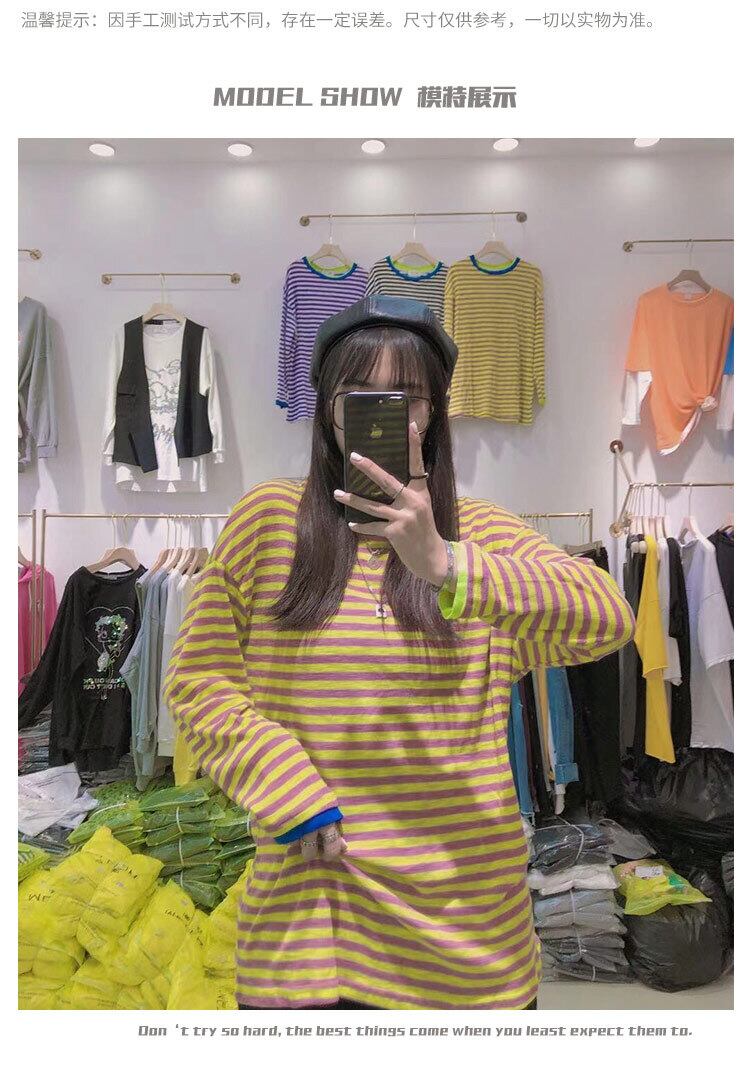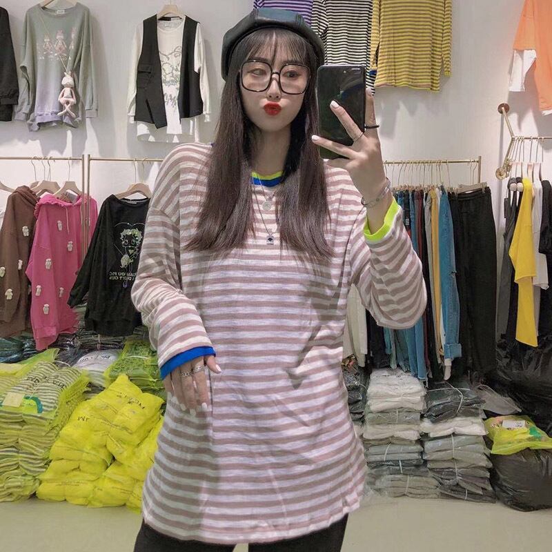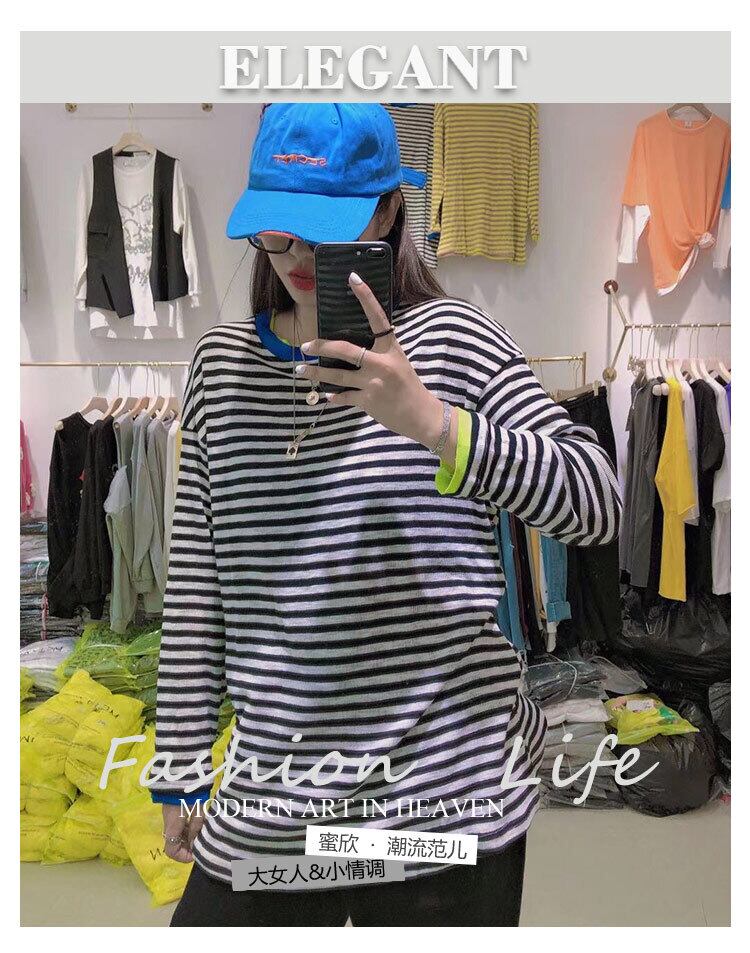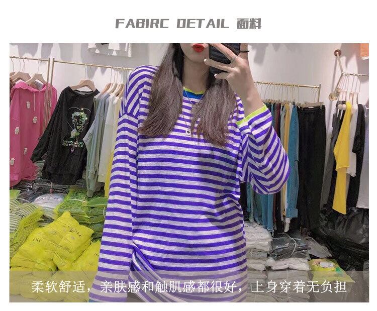 プラスサイズの女性の秋の服2020新しいヨーロッパの商品の縞模様の野生の長袖のTシャツの女性の緩い、薄い腹カバートップ ミックスインファッション9235108312