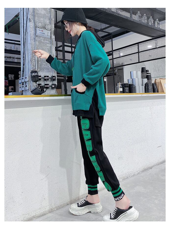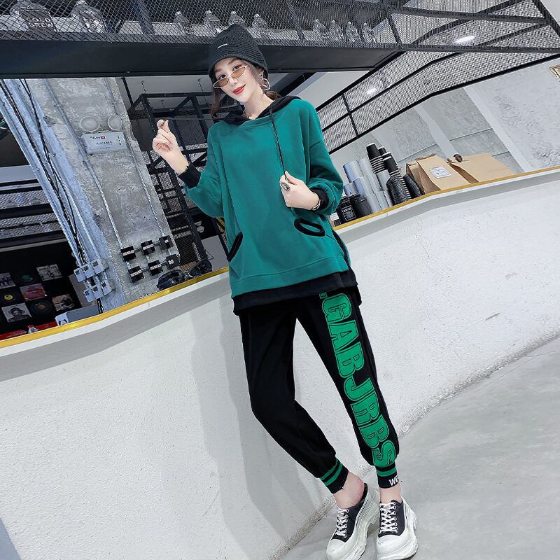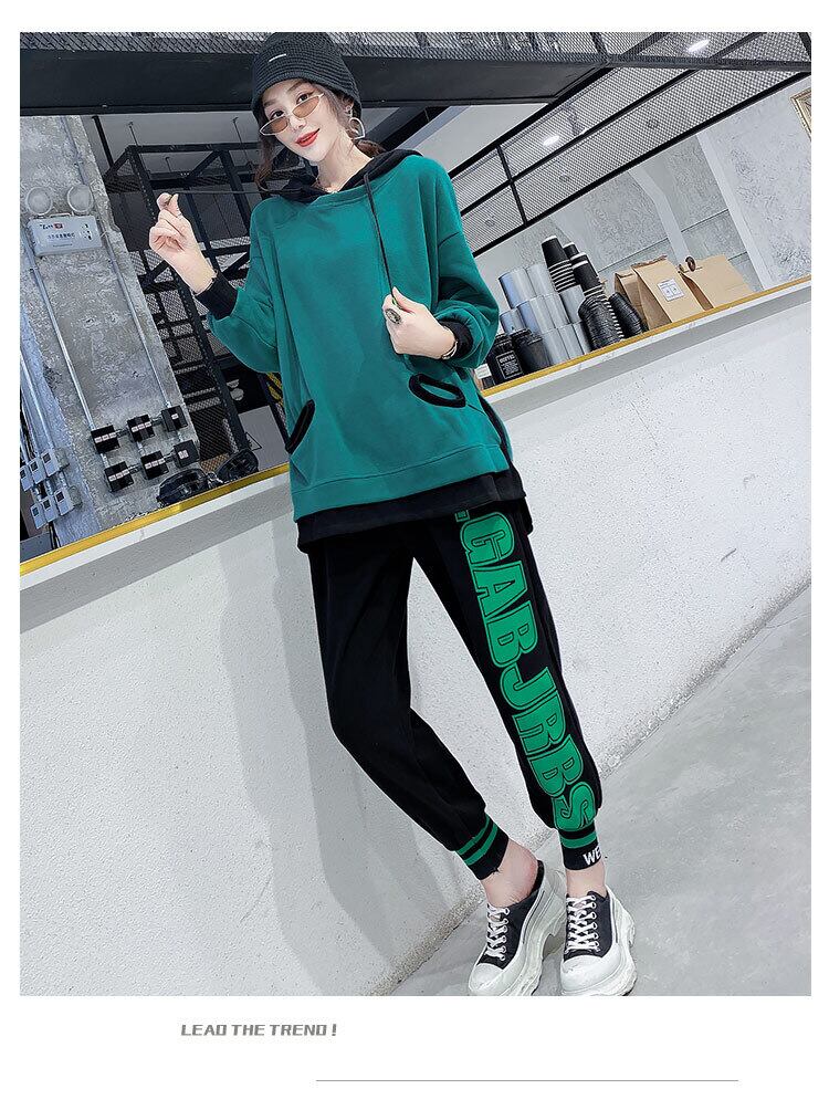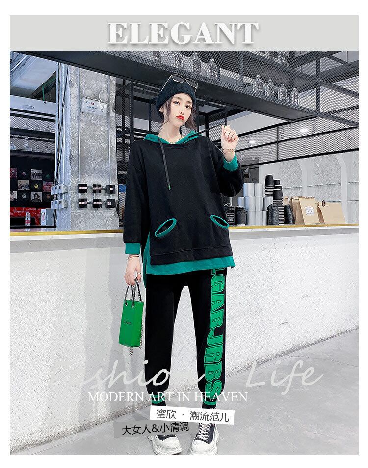 2020年秋新作レディースプラスサイズファットmmフード付きセーター年齢削減ルーズフィットウエスタンレターズボンスリム ミックスインファッション68971180804