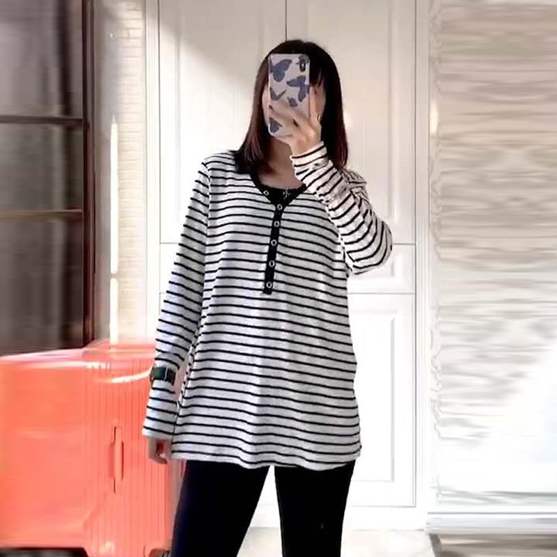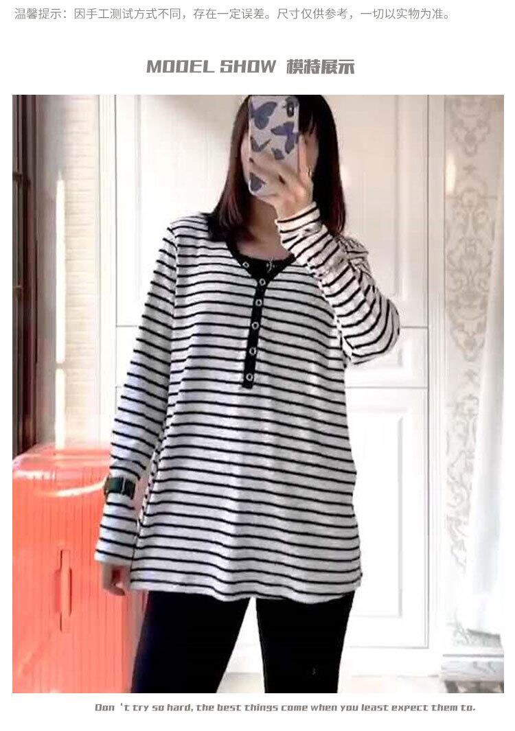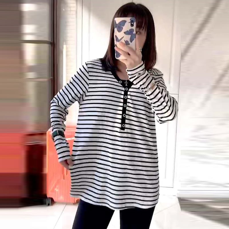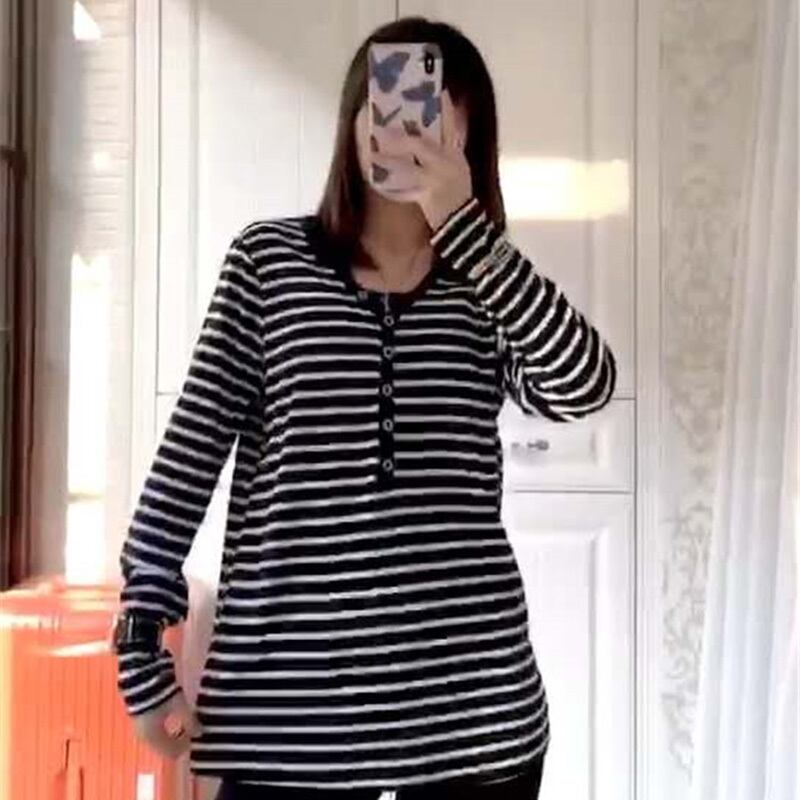 秋プラスサイズファットmmデザインセンスシャツ慎重にマシンストライプボトムスシャツロングセクション薄手長袖Tシャツレディースオールマッチ ミックスインファッション37384681322