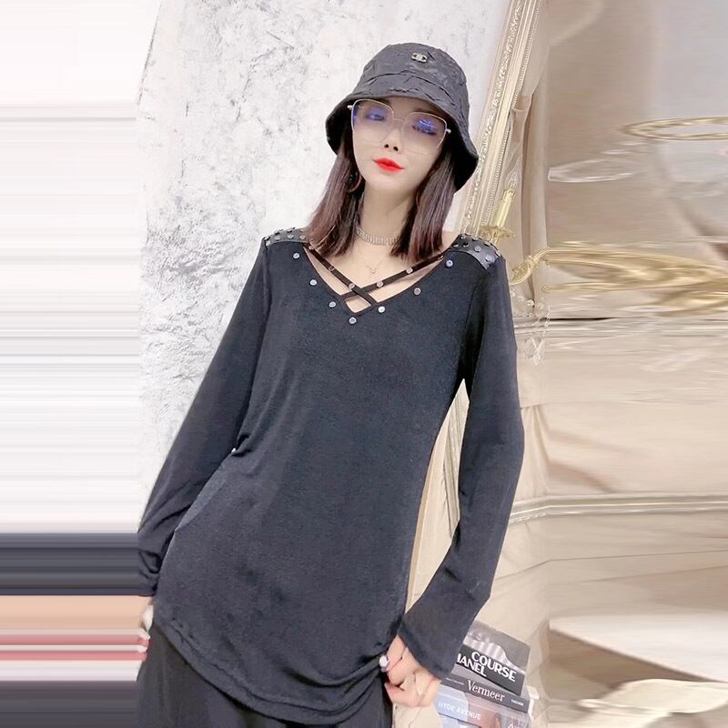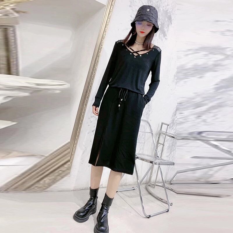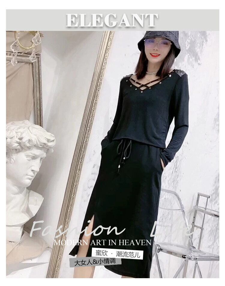 ファットMM秋プラスファットプラスサイズTシャツレディース長袖潮太った妹ゆるくて薄いブラウスサイドスリットスカート ミックスインファッション18720022374