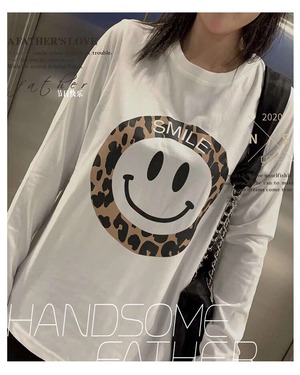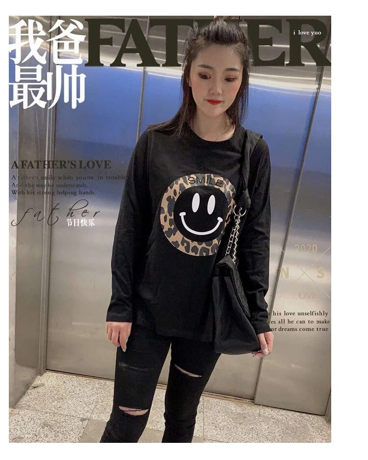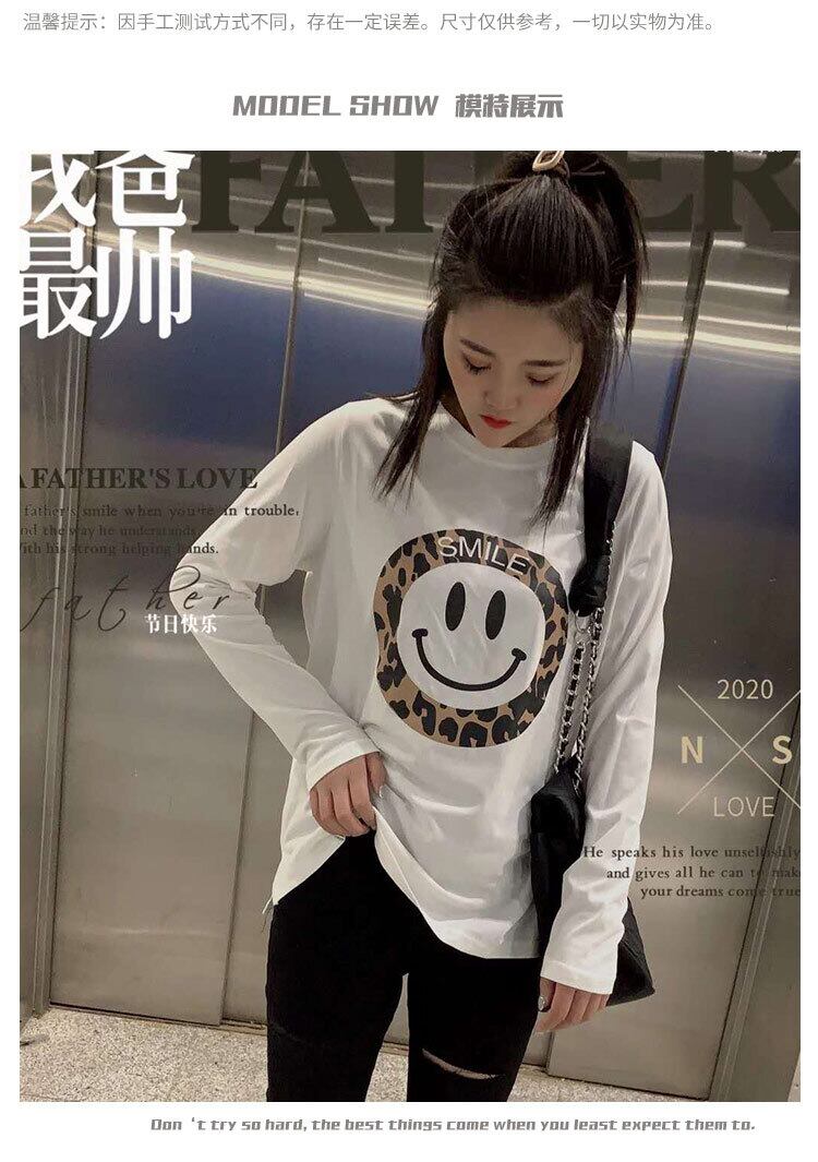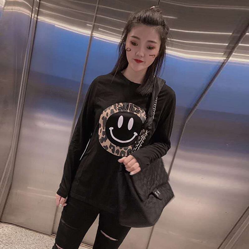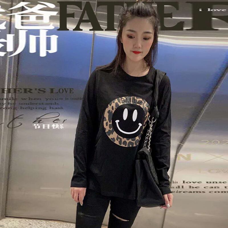 2020年秋の新しいプラスサイズの女性の長袖TシャツスマイルフェイスTルーズミドル丈ファットMMスリムトップ ミックスインファッション95349760604