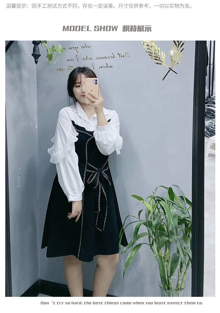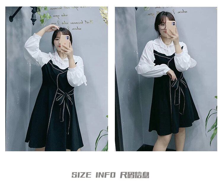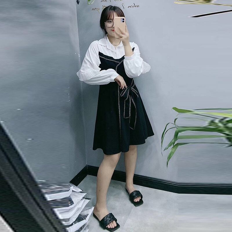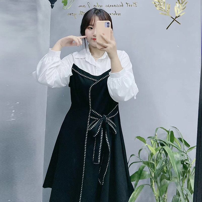 2020年秋の新作プラスサイズファットミリスリミングワンピースフェイクツーピーススーツ、ややファットなベルト着用トレンド ミックスインファッション29491952637