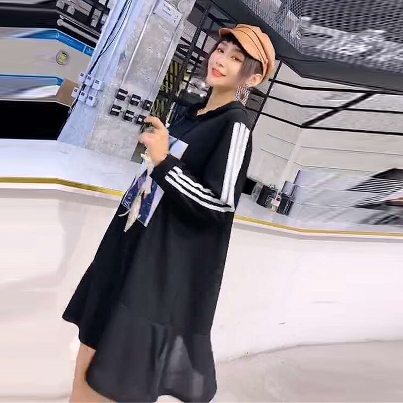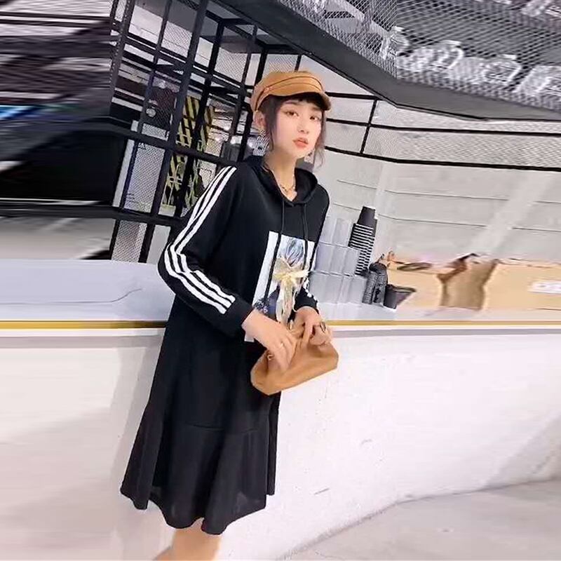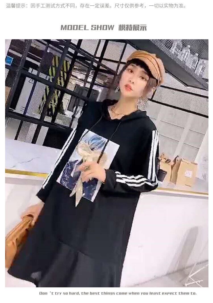 プラスサイズの女性の2020年秋の新しい脂肪姉妹ルーズで薄いシンプルでファッショナブルな長袖フード付きカジュアルドレス ミックスインファッション54772173455