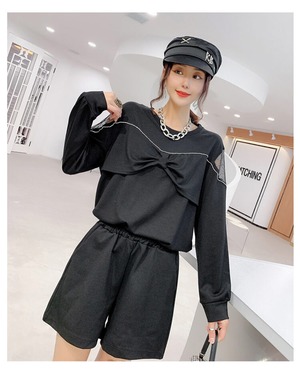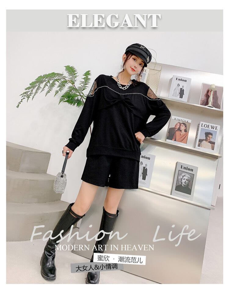 ファットMMプラスサイズレディースブラウス、ファットシスター、薄手のショーツスーツ、2020年秋のツーピーススーツ ミックスインファッション21752000730