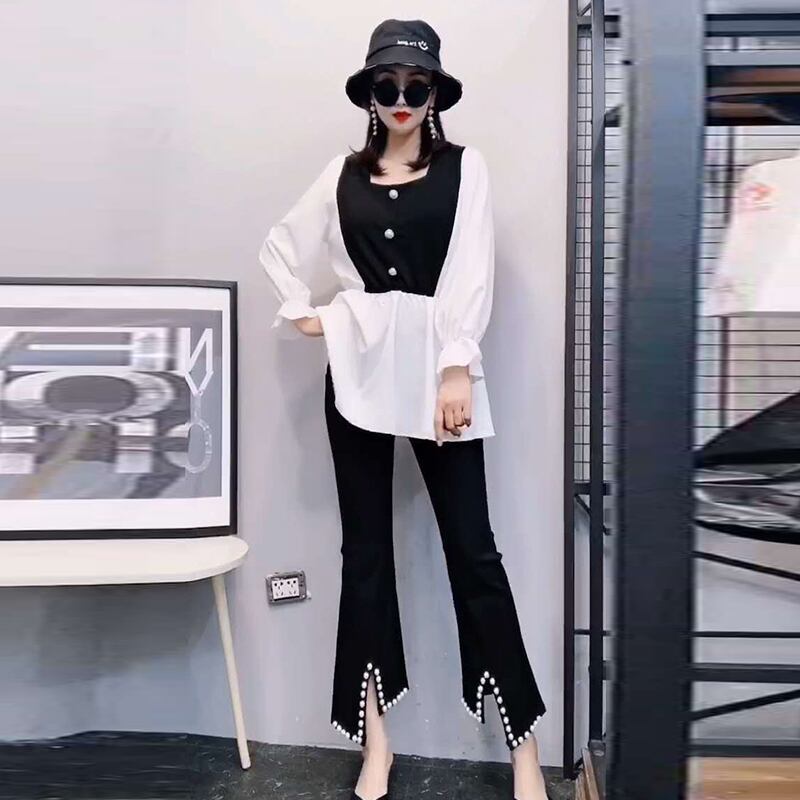 プラスファットプラスサイズレディース2020秋の新作ミドル丈Tシャツルーズカバー腹脂肪姉妹mm200 kgトップ ミックスインファッション52076543852