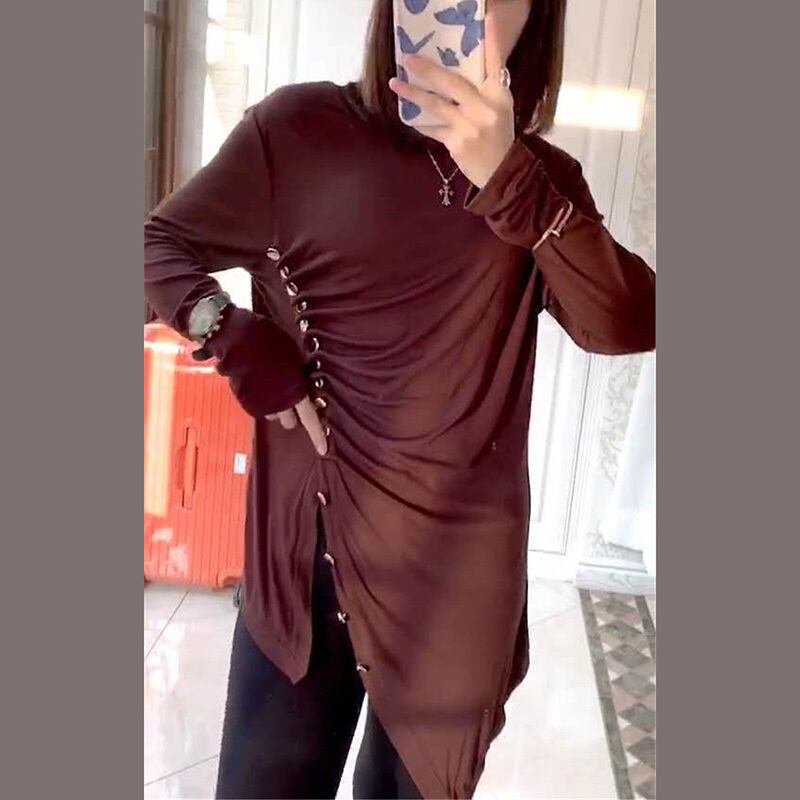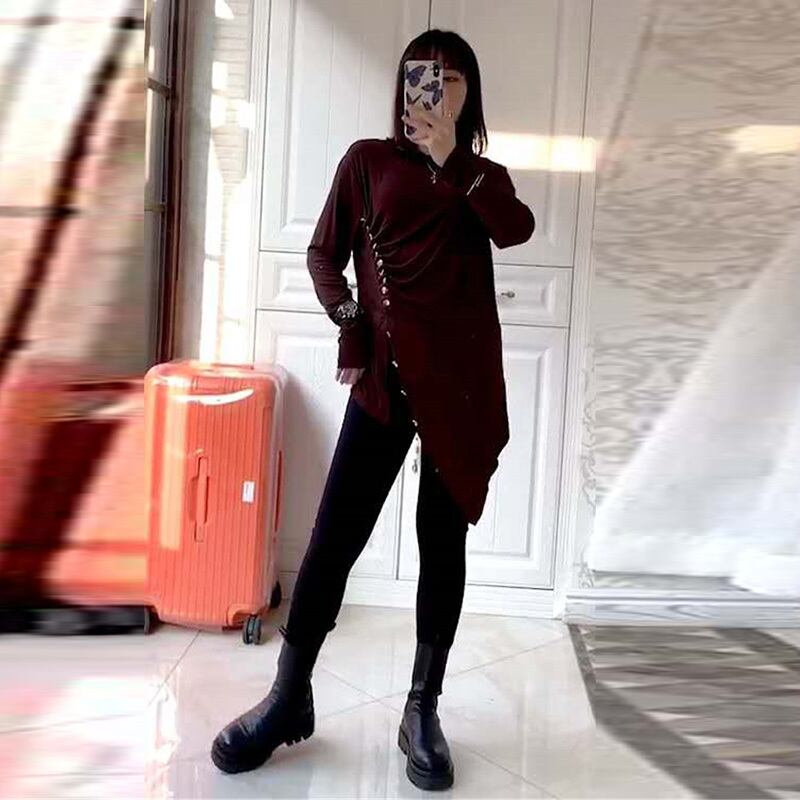 2020ファットシスタープラスサイズレディース秋服ボタンオールマッチTシャツトップスルーズでやや太めの女性は薄くてトレンディ ミックスインファッション15903208296