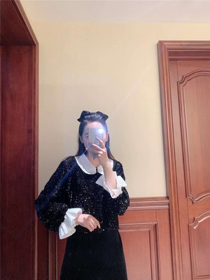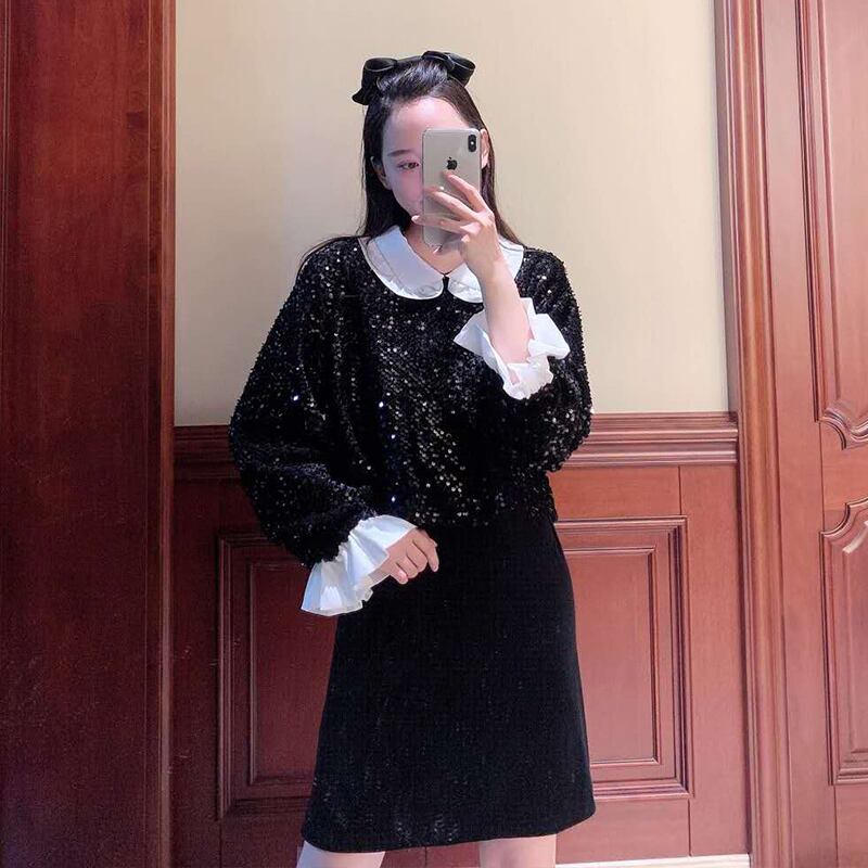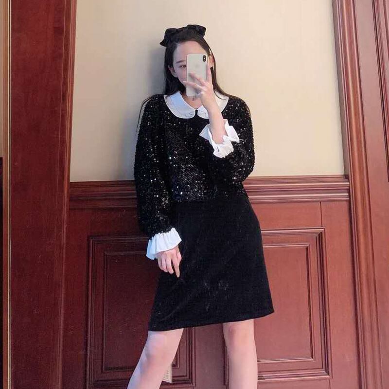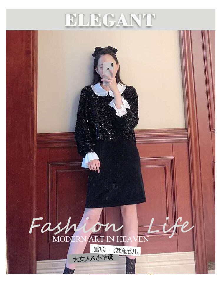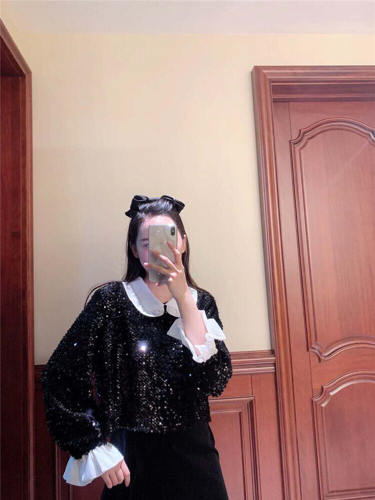 大きいサイズの脂肪の姉妹は薄いラペルスパンコールトップ女性の秋西部スタイルファッショナブルな長袖tシャツ年齢減少脂肪MMボトムスシャツ ミックスインファッション94840032732