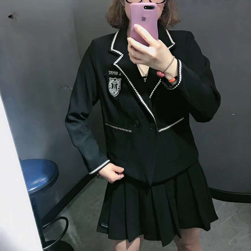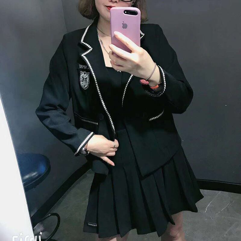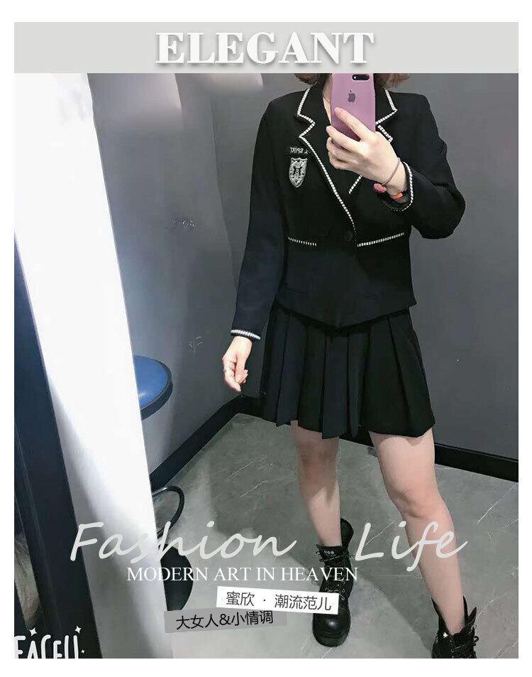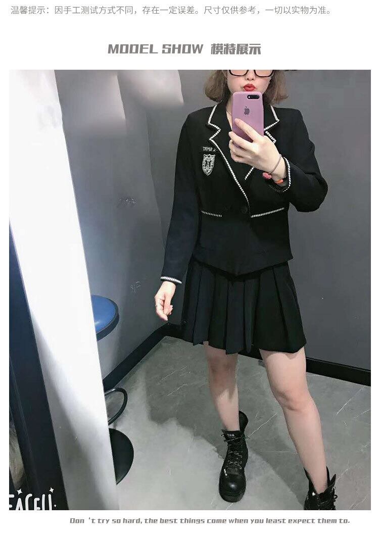 秋の新しい大きいサイズのスーツのジャケットの女性の脂肪mmツーピースジャケットは薄いカジュアルプリーツスカート200 kgでした ミックスインファッション78827711671