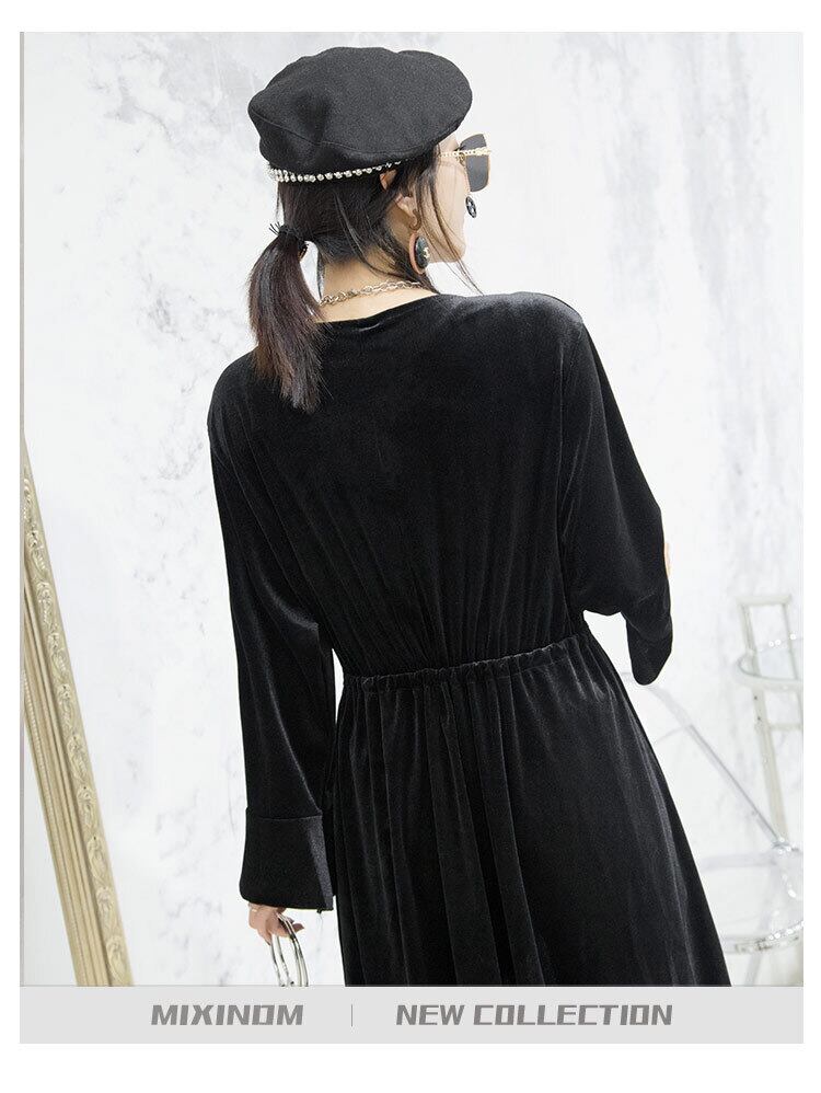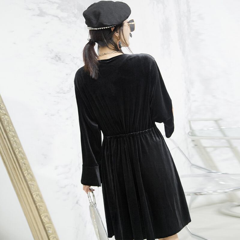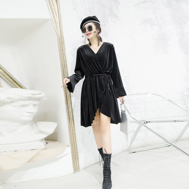 プラスサイズの女性の秋と脂肪の姉妹2020新しいスタイルのスリムで年齢を削減するカバー肉ベルベットのウエストのドレスのトレンド ミックスインファッション89683506663