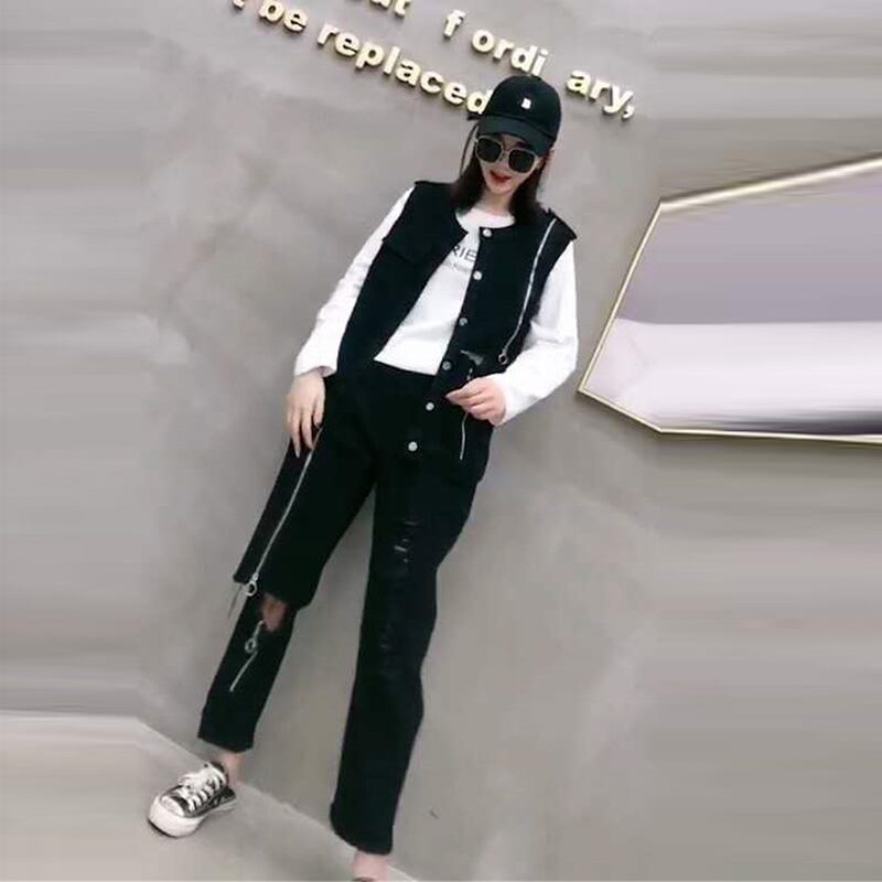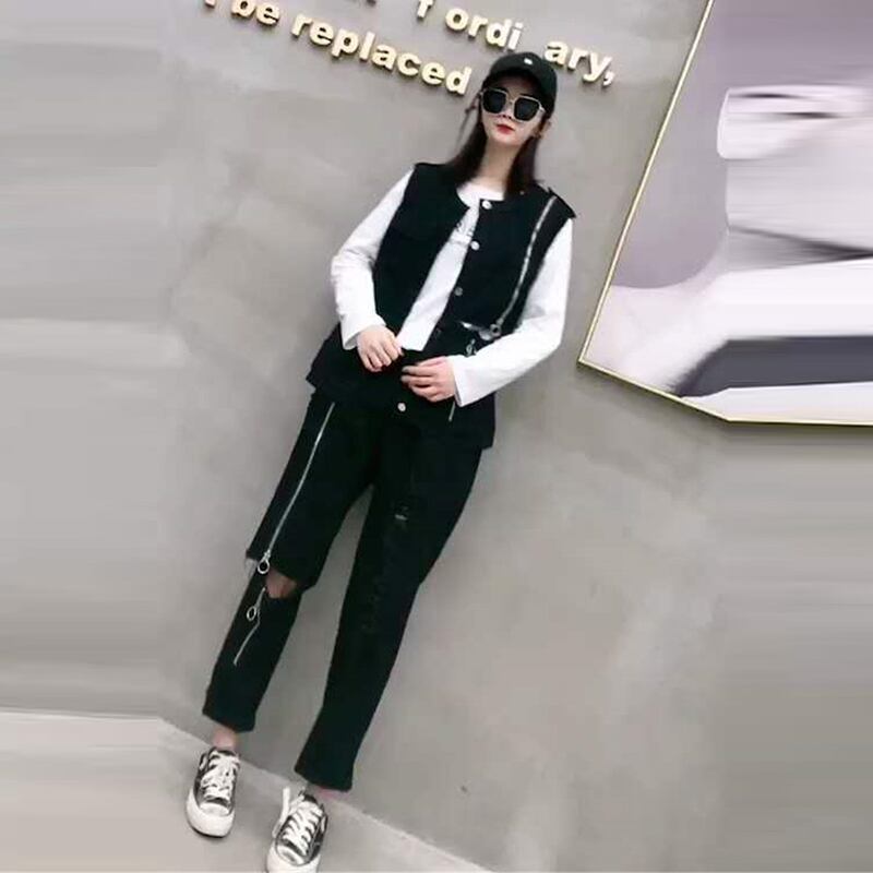 2020年秋の新しいプラスサイズの女性のファッション気質脂肪ミリメートル薄いチョッキ破れたパンツスリーピーススーツは年齢を減らします ミックスインファッション98300572371