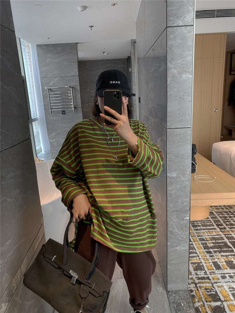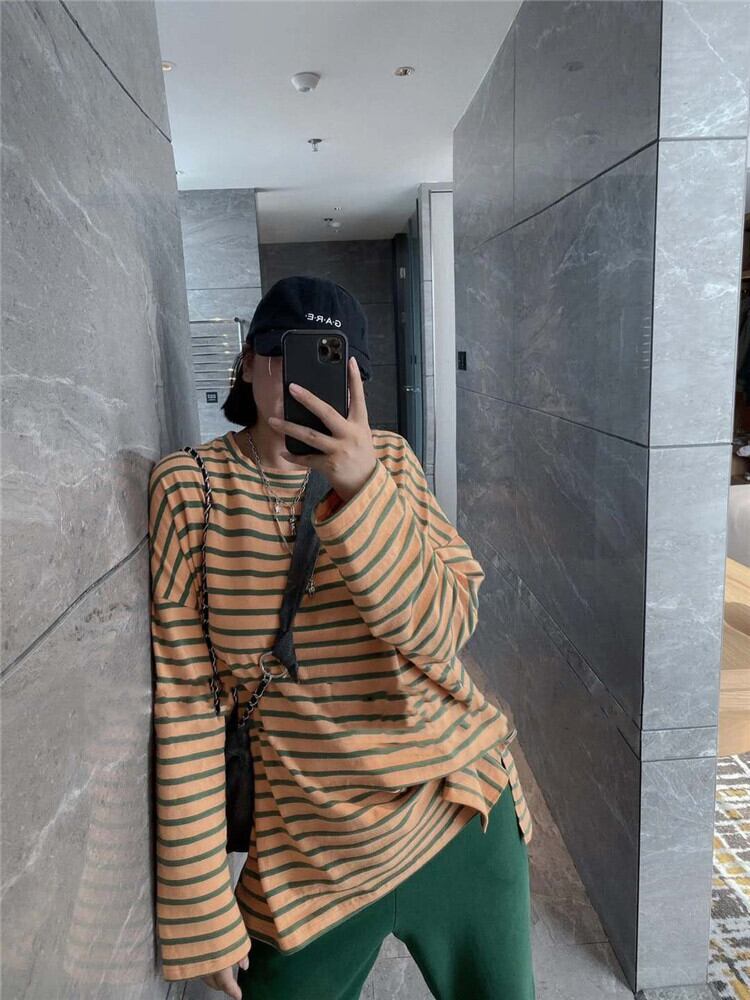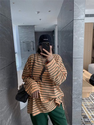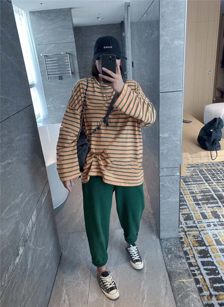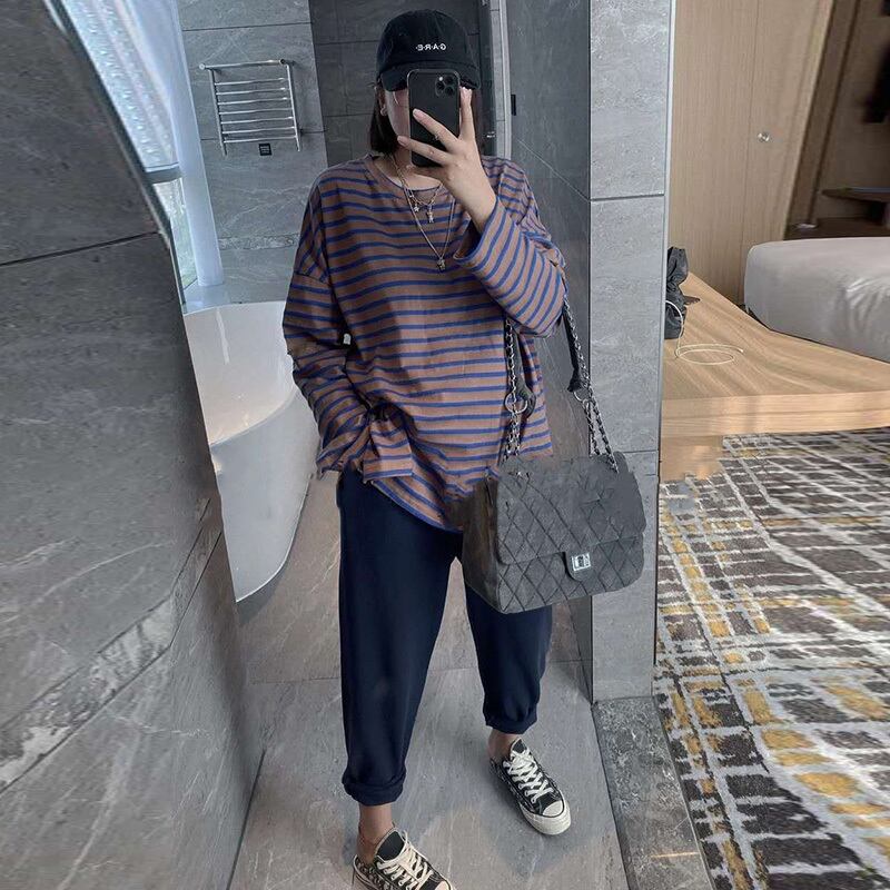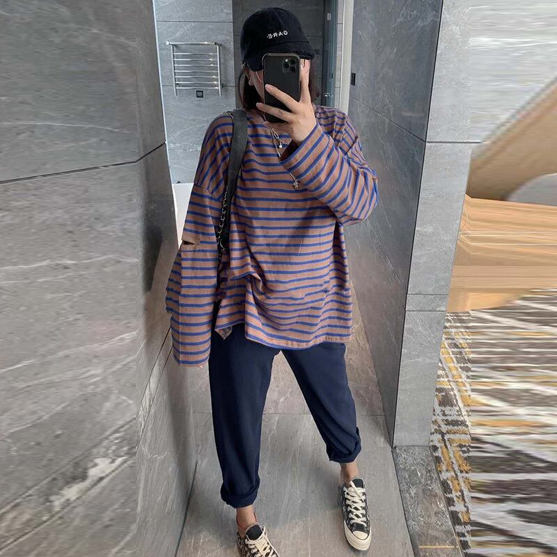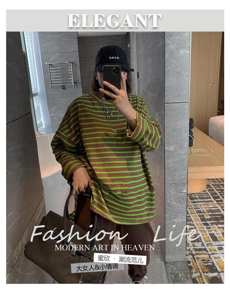 プラスサイズレディースウェア2020秋の新しいファットmm年齢の削減と薄いストライプの長袖Tシャツウエスタンスタイルの腹脂肪ブラウス ミックスインファッション65828617892