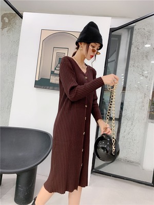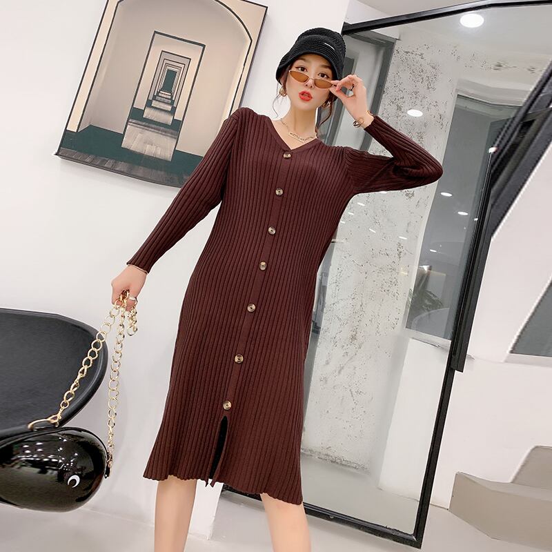プラスサイズの婦人服2020年初秋の新しいスタイルの膝上ロングスカート200 kgファットmmスリムニットドレス ミックスインファッション72559903161