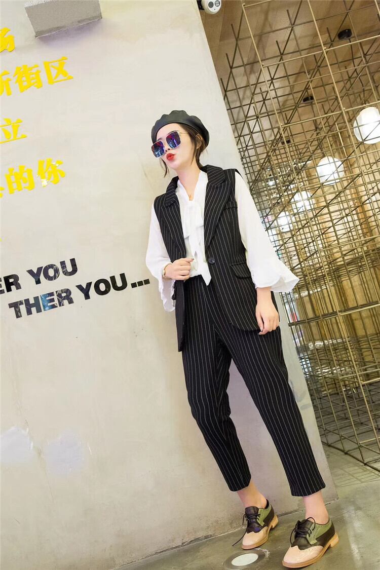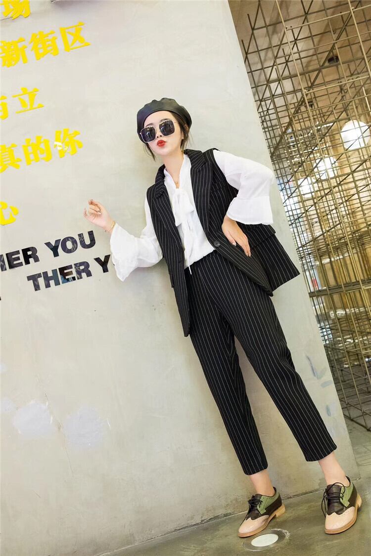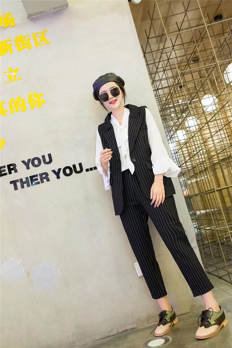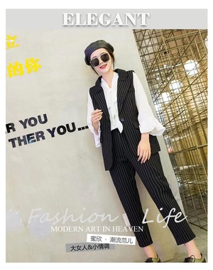 プラスサイズの女性の脂肪の姉妹2020秋の新しいストライプチョッキスリムブラウス9ポイントパンツスーツウエスタンスタイルツーピーススーツ ミックスインファッション79296711240