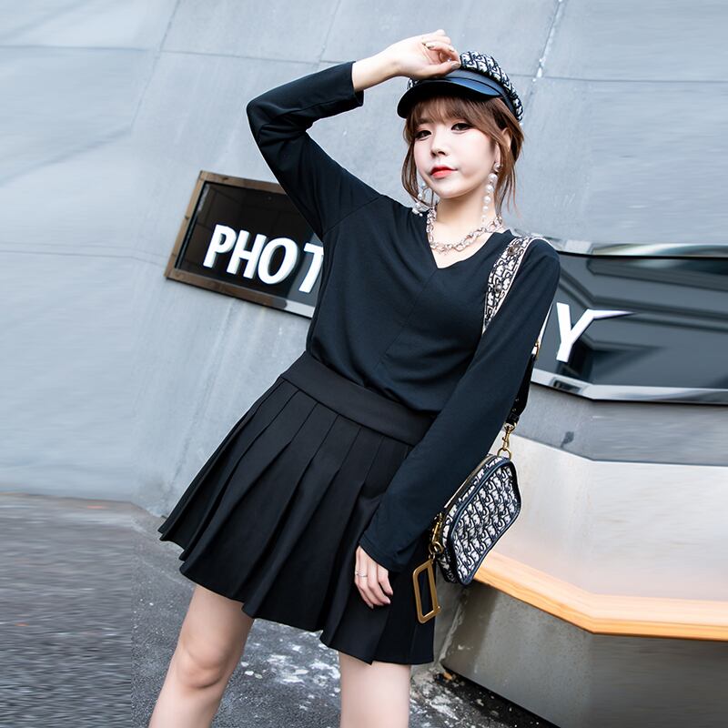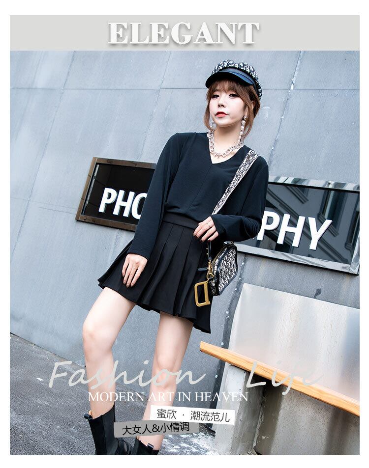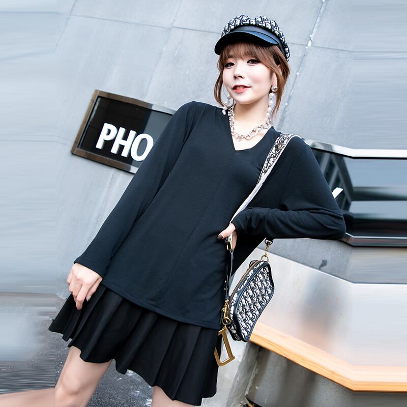 プラスサイズの女性の秋バージョンカバー腹痩身トップ200ポンド脂肪姉妹MMウエスタンスタイル長袖Tシャツボトムスシャツ潮 ミックスインファッション81610670251