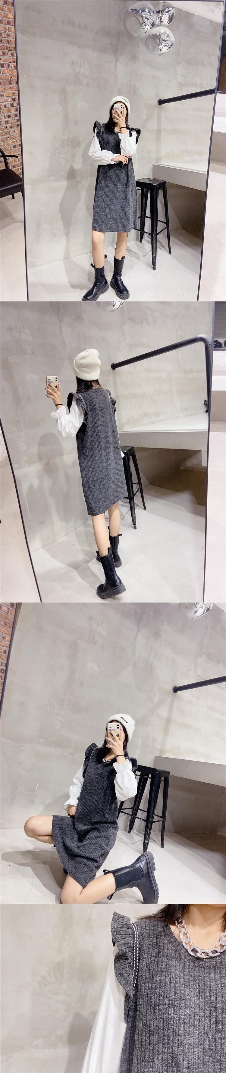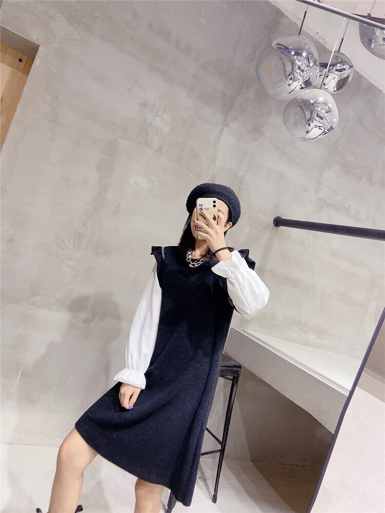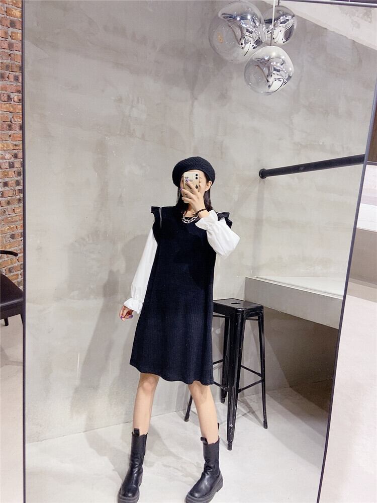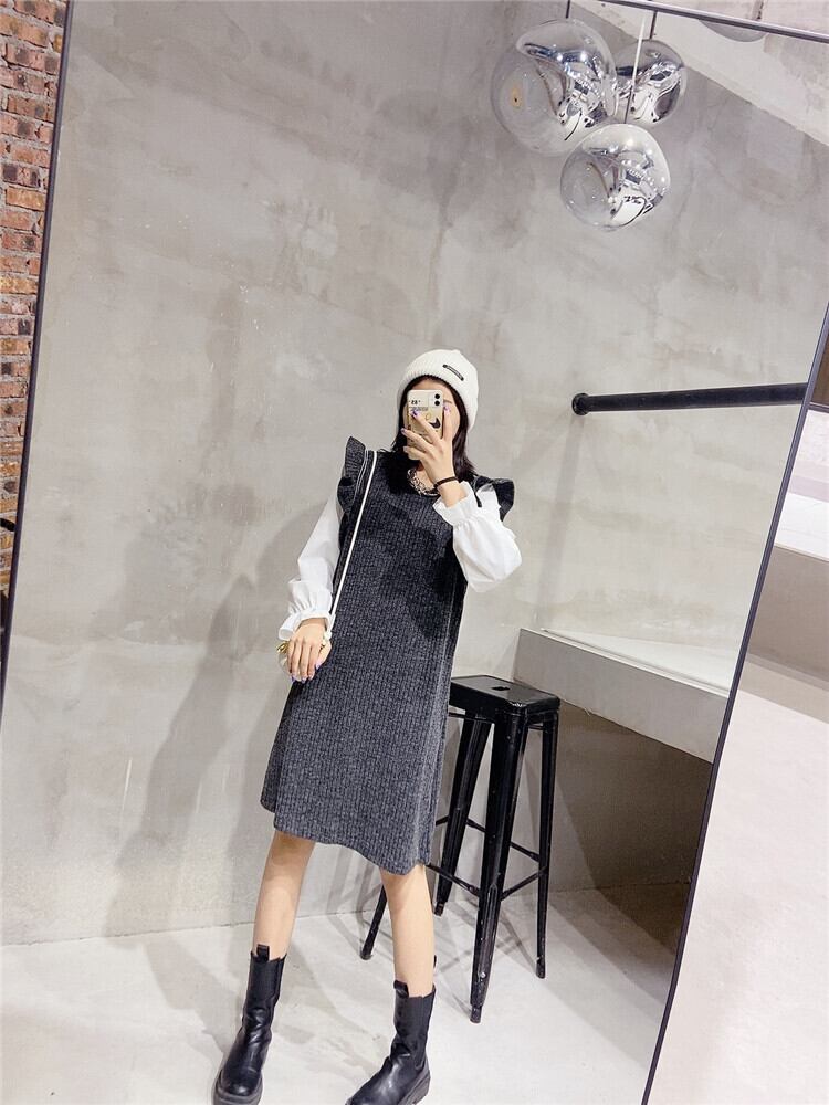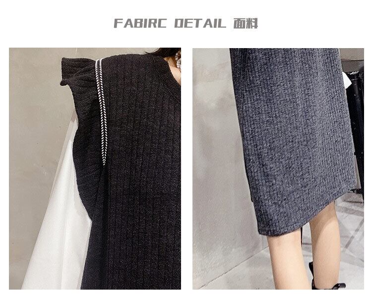 大きいサイズの脂肪の姉妹スリムスーツ女性の秋の偽のツーピースの蓮の葉の肩のドレスの年齢を減らす西洋のファッションの女性のスカート ミックスインファッション52675297486