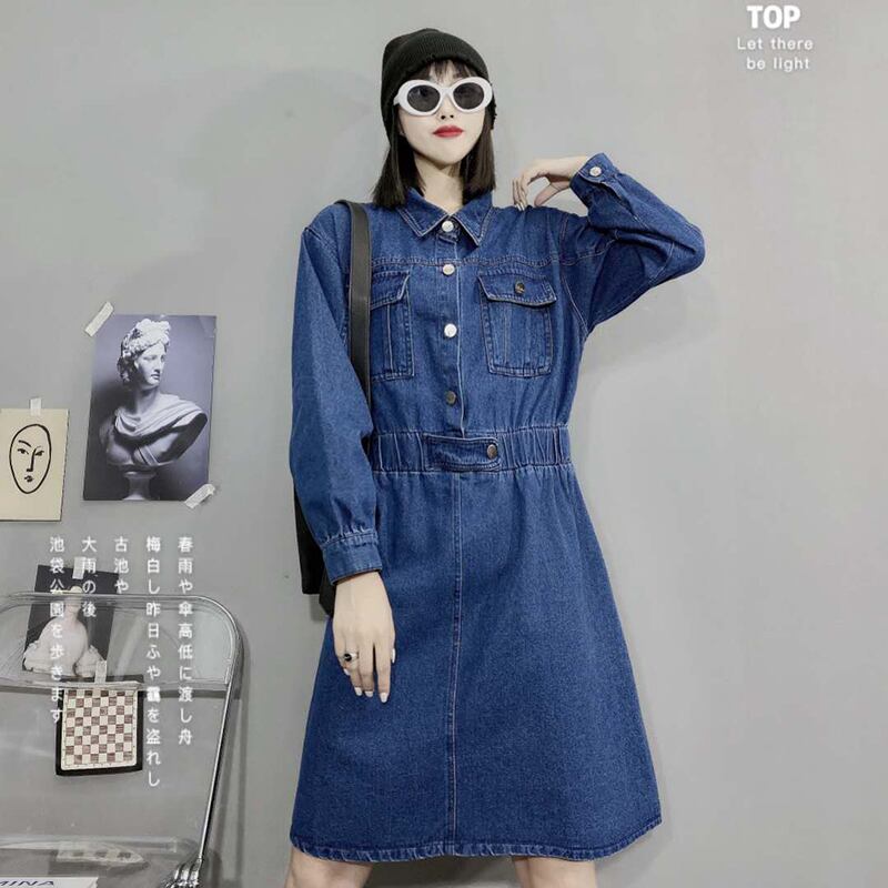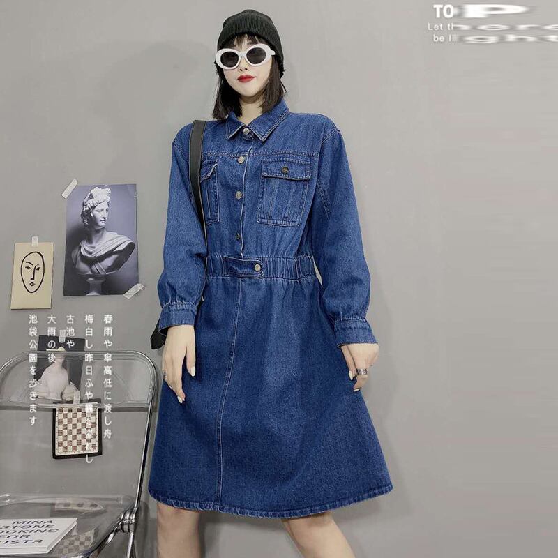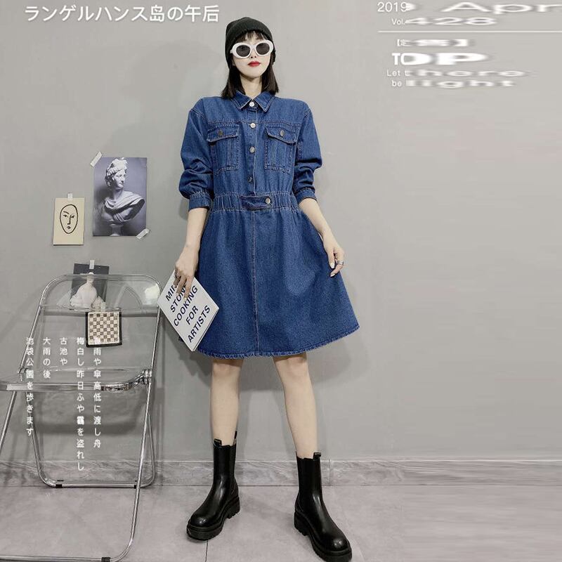 2020年秋新作プラスサイズレディースファットmmウエスタンスタイルウエストウエストカバースリミングミドル丈デニムドレスレディース ミックスインファッション754781434