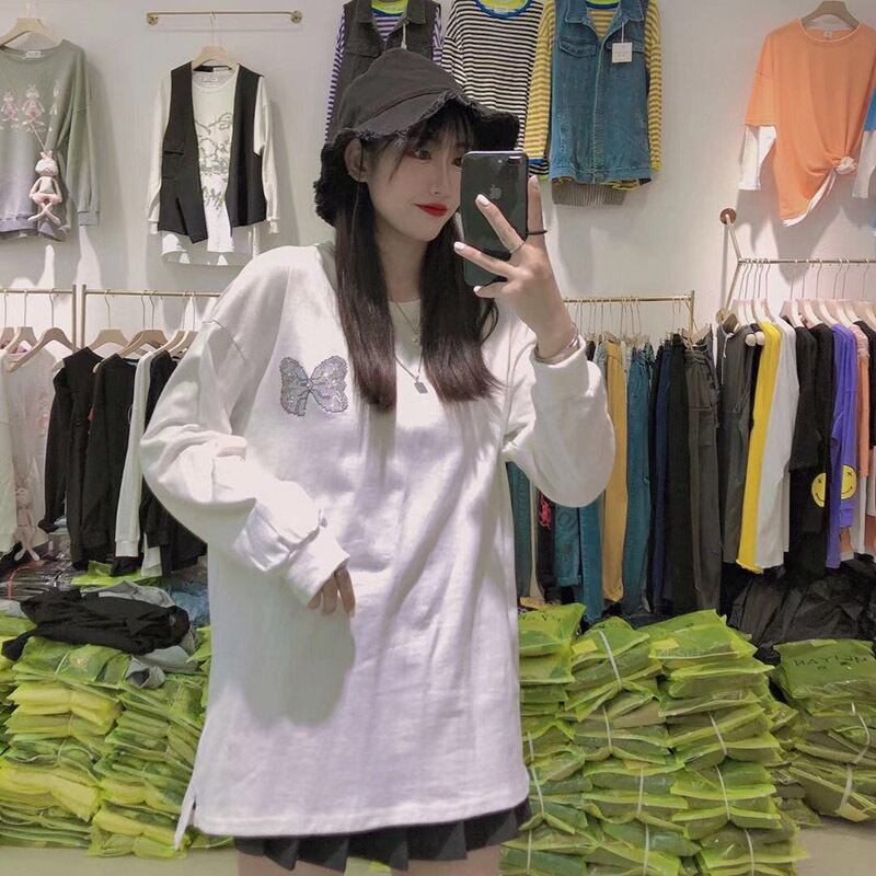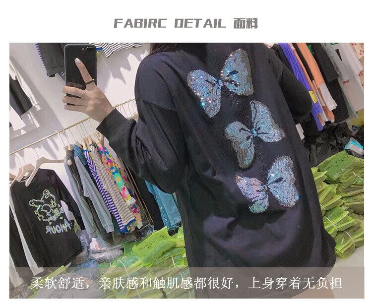 2020年秋の新しいプラスサイズの女性の明るいダイヤモンドcompionate女性のファットシスターは、薄手でウエスタンスタイルのカバーベリートップTシャツです ミックスインファッション643752709