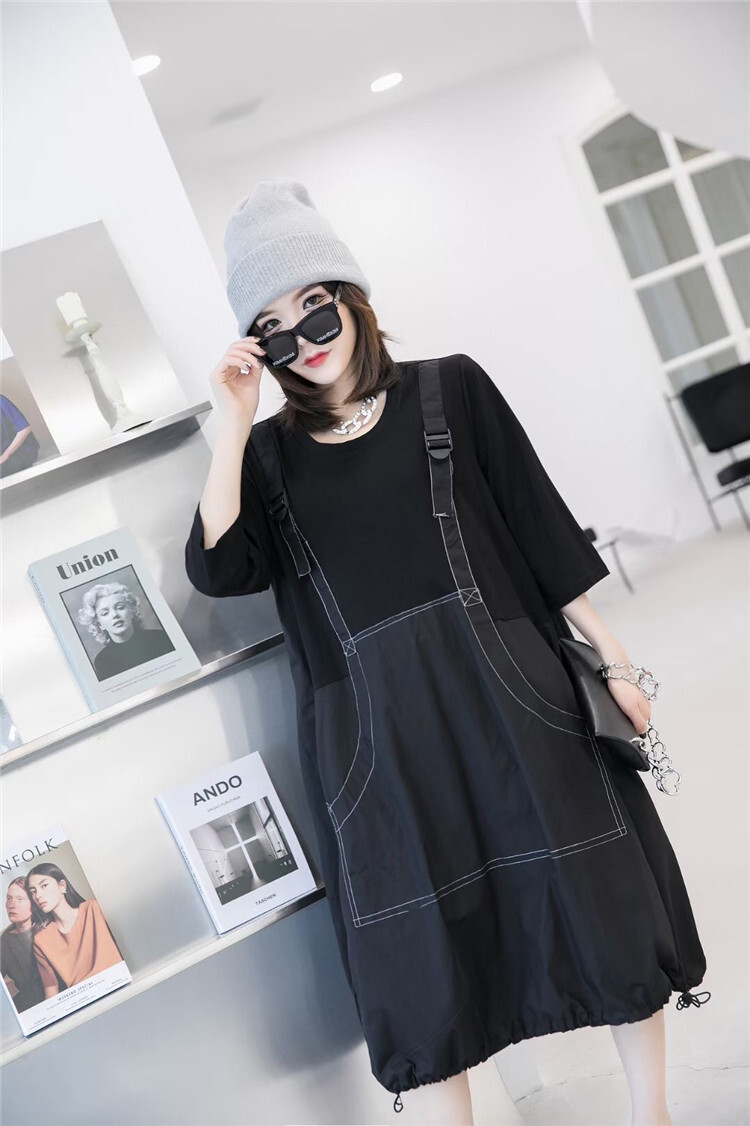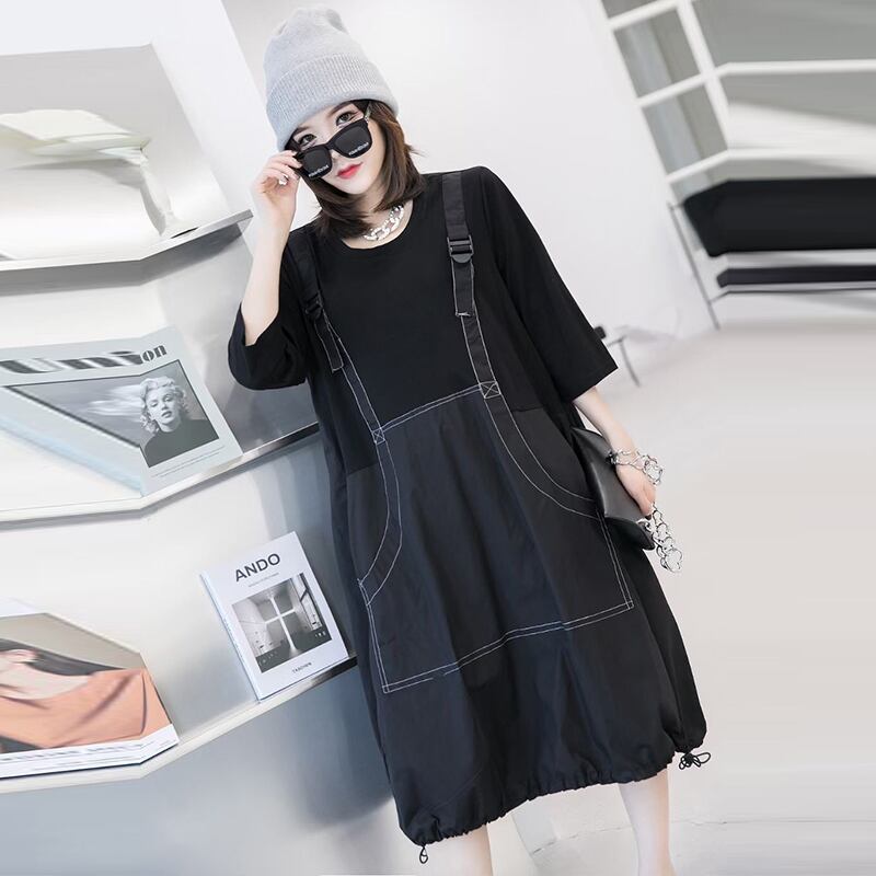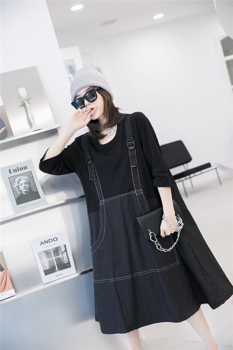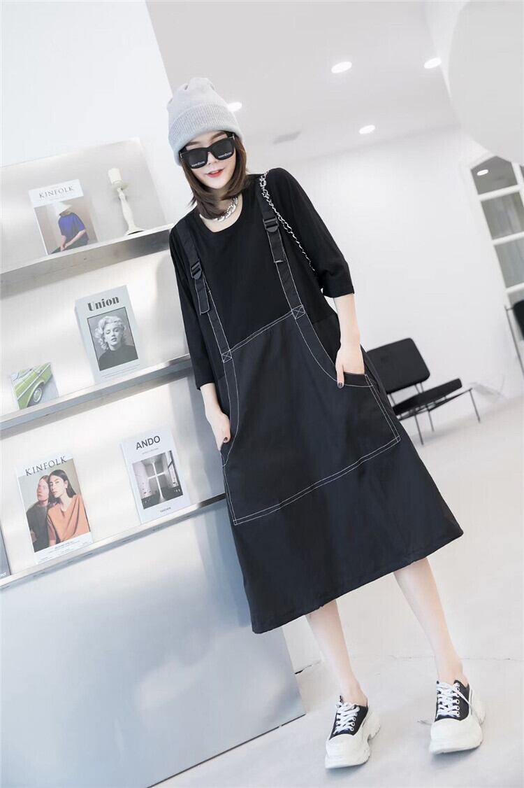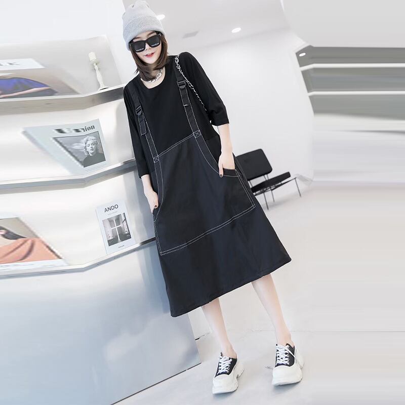 プラスサイズの女性の脂肪のmmドレス2020年秋の新しいスタイルのカバー肉を明らかに薄い脂肪の妹偽のツーピースの女性のスカート ミックスインファッション88798212052