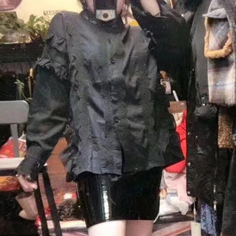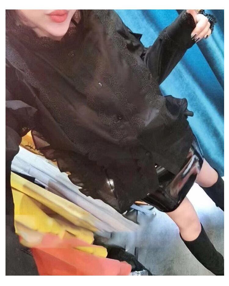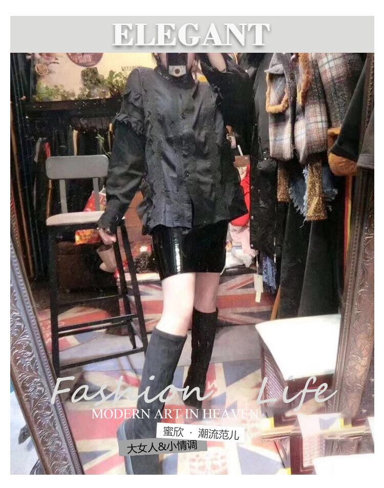 大きいサイズファットmm痩身と年齢を減らす西洋風ブラウス秋のデザインセンスレースエッジラペル長袖シャツ女性のトレンド ミックスインファッション53166963674