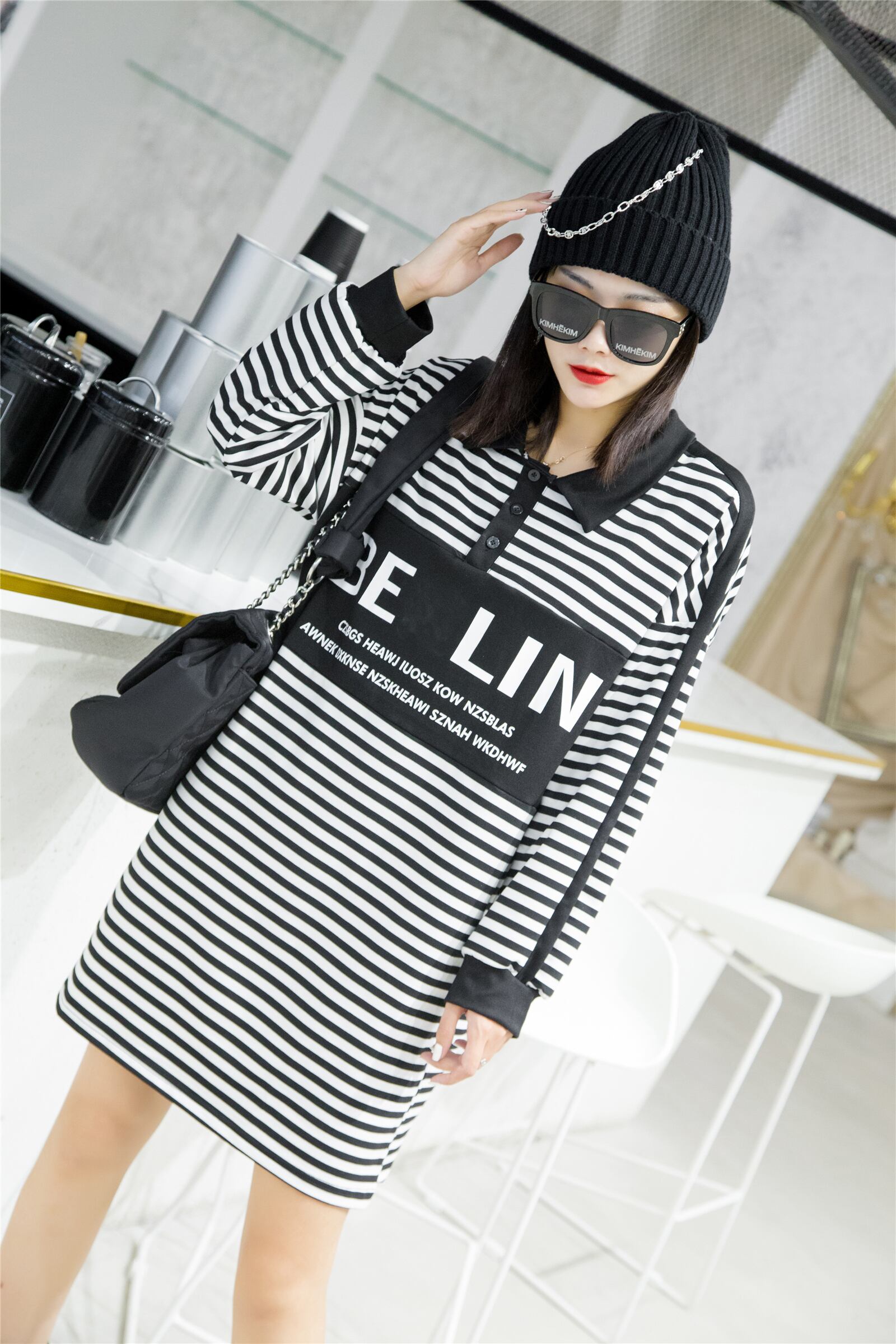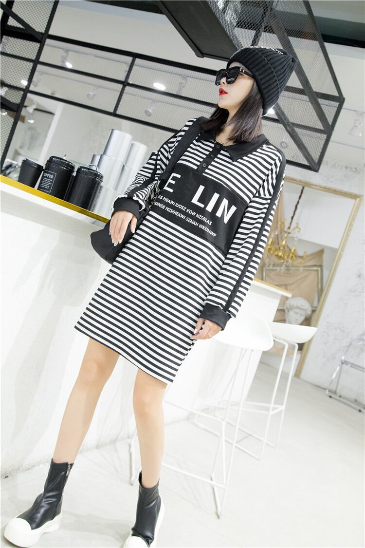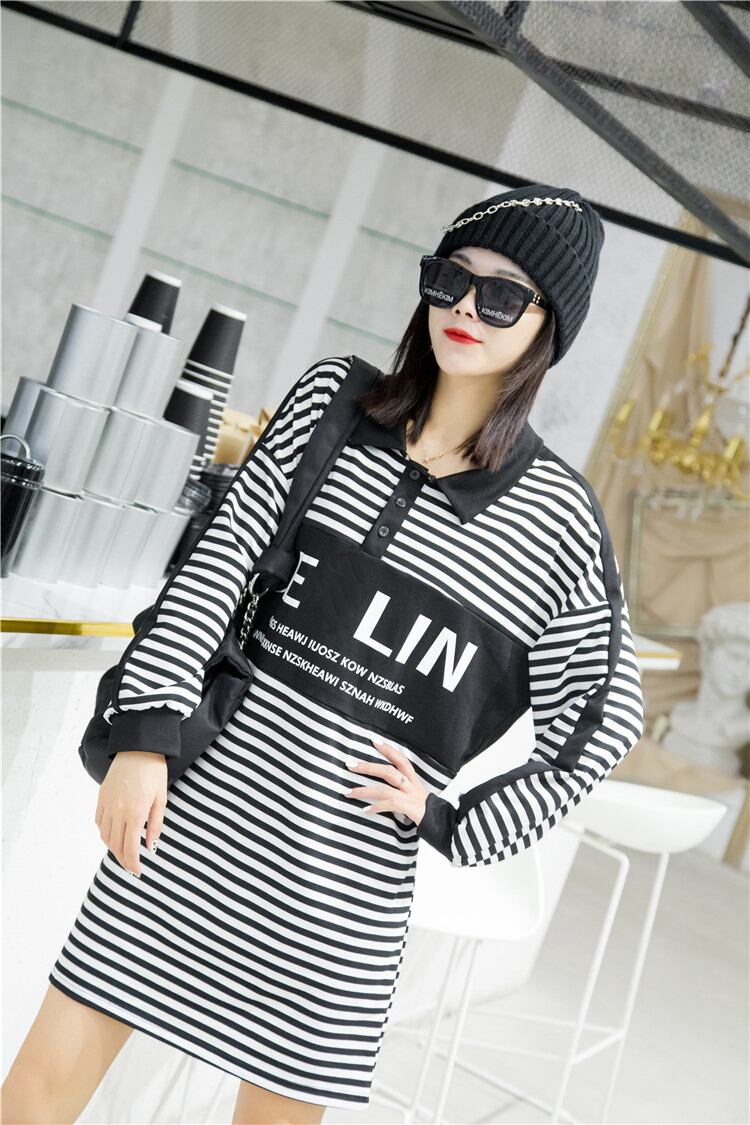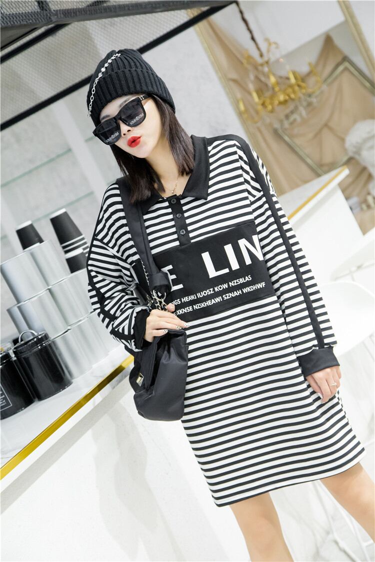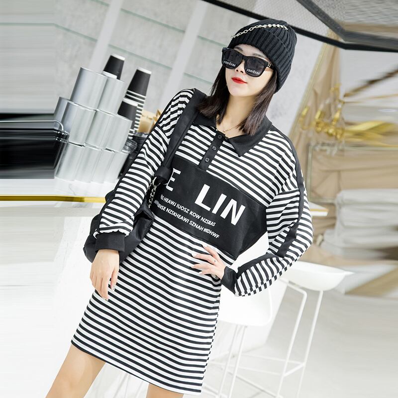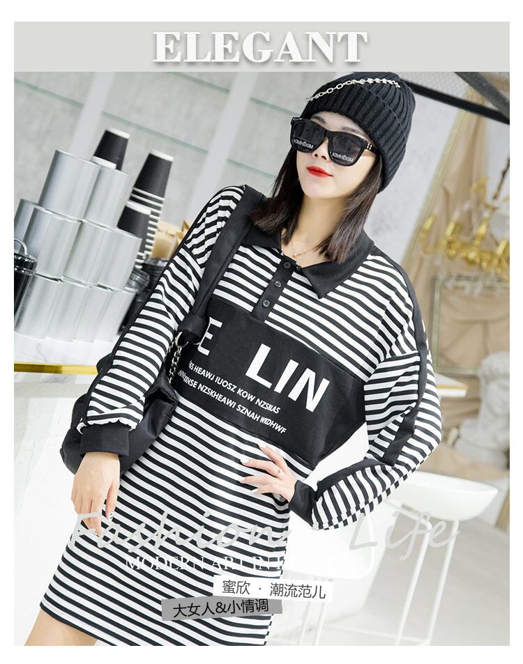 プラスサイズのレディース2020秋の新しい脂肪の姉妹mmレトロストライプルーズウエスト痩身ドレス ミックスインファッション86603647173