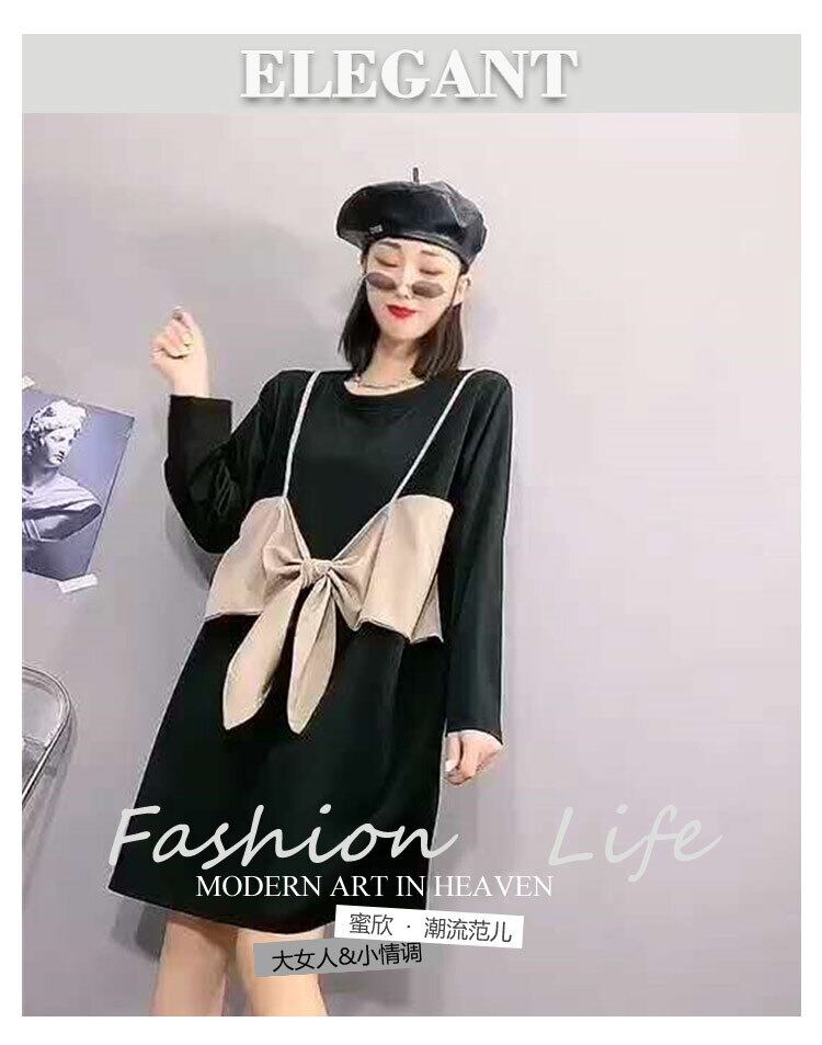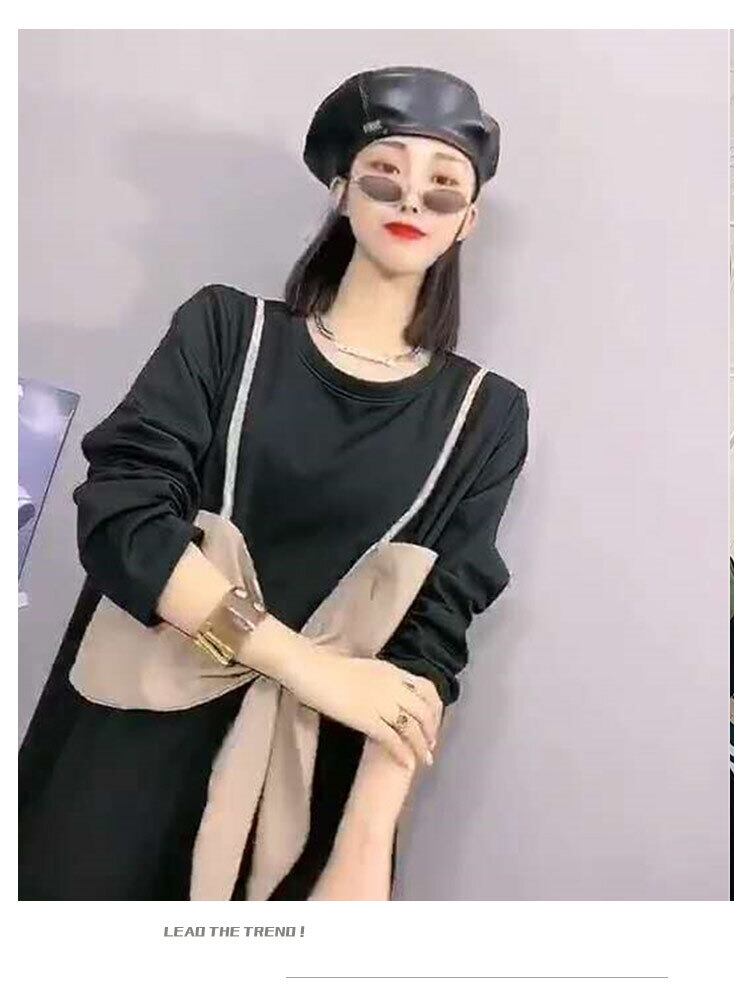 2020秋の人気の新しい大きいサイズの女性のちょう結びのカジュアルなTシャツのスカートは薄い、長袖のドレスです ミックスインファッション34311709171