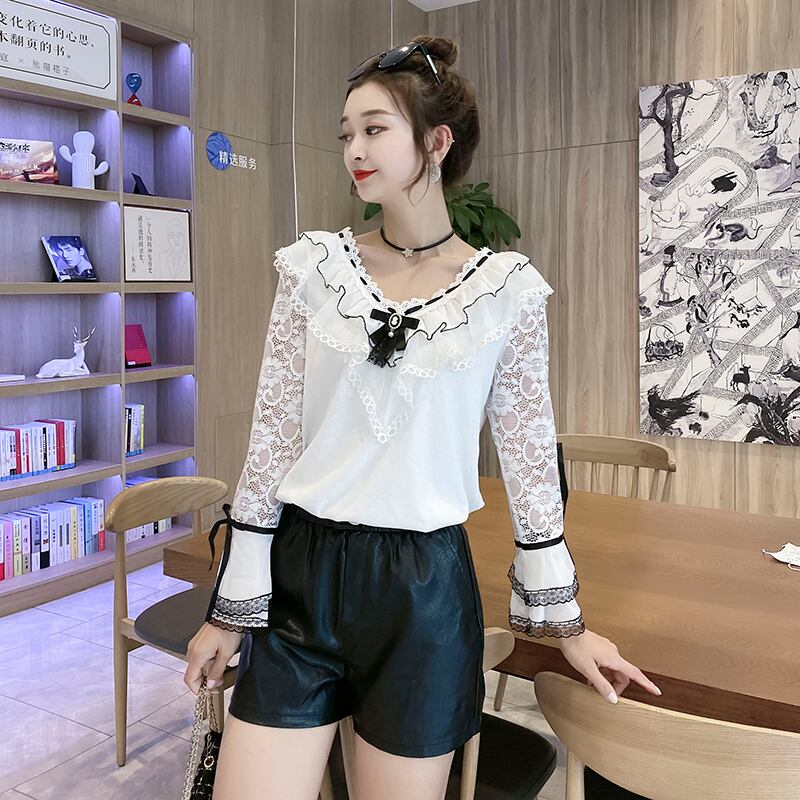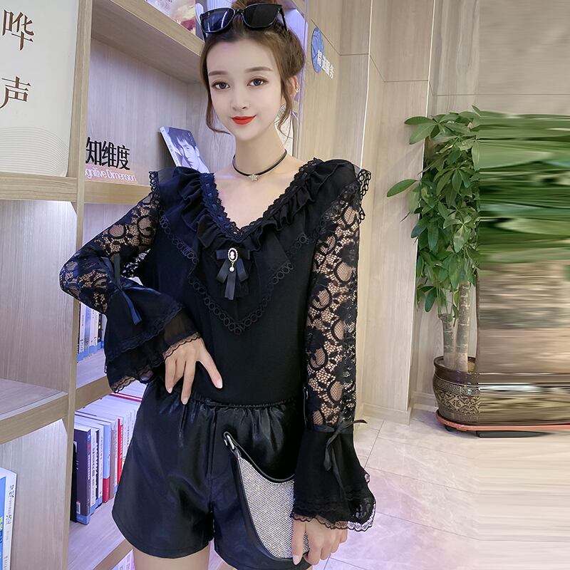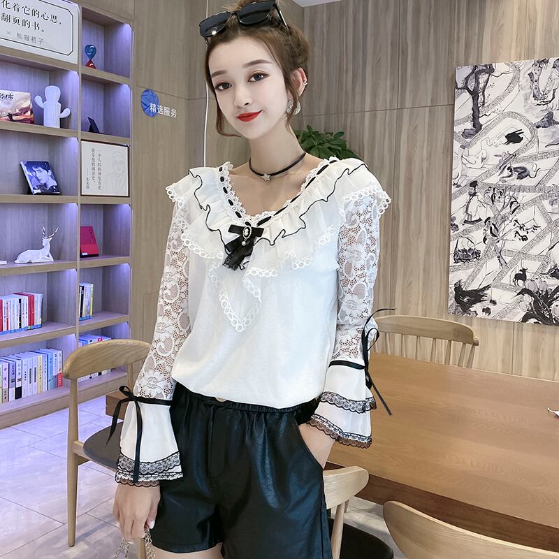 プラスのサイズの女性の秋の新しいy感覚脂肪脂肪MMトランペットスリーブレースシャツボトムスシャツを着て脂肪を追加して西洋スタイルを増やす ミックスインファッション50112121863