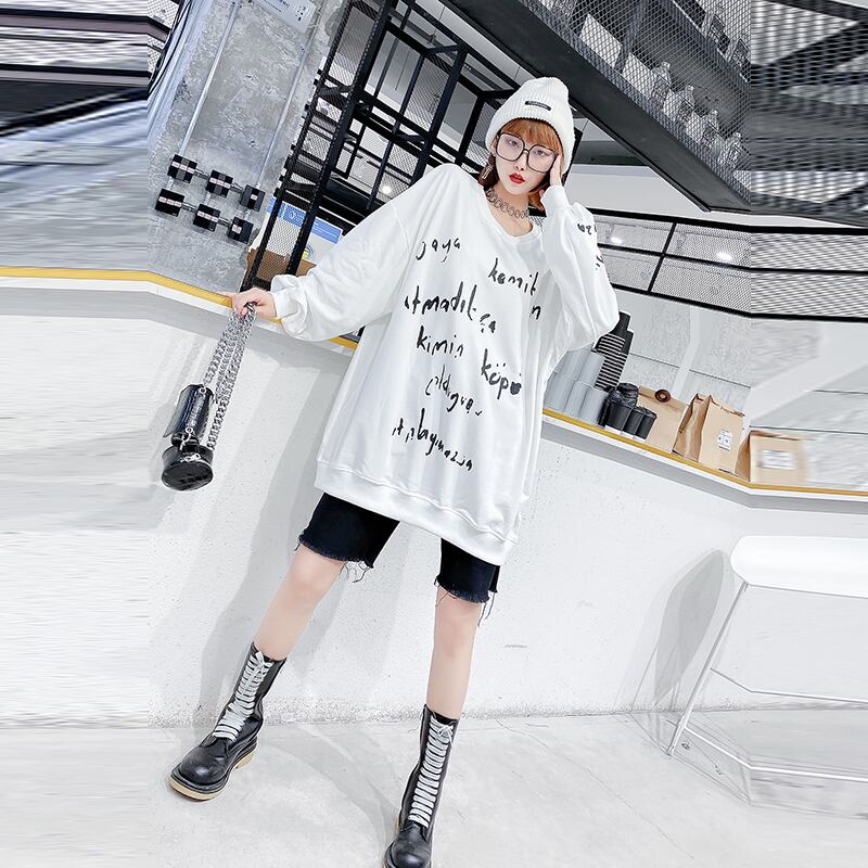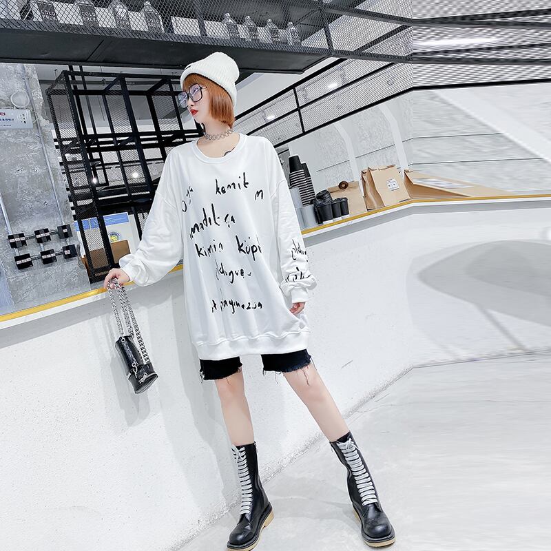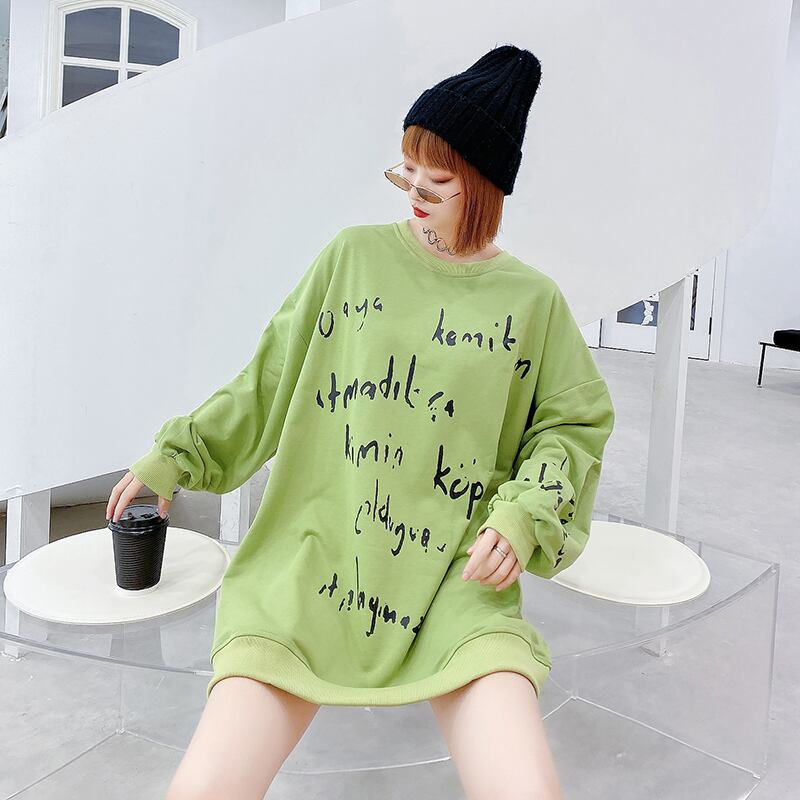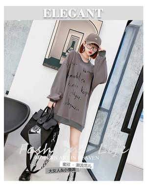 200を超える大きいサイズの婦人服、脂肪のMM、肉を覆う、薄くて怠惰な風、長い文字、シンプルな長袖Tシャツスカート ミックスインファッション64055627967