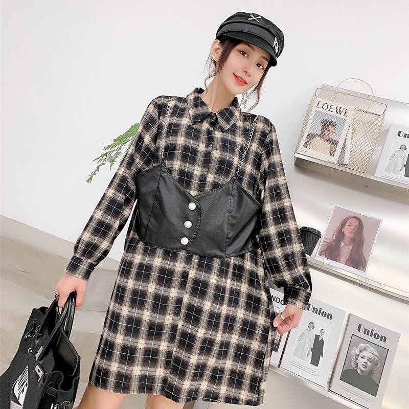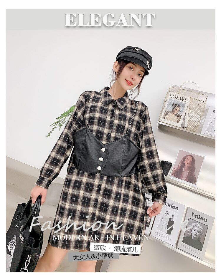 プラスサイズのファットmmグリッドシャツレディース2020フェイクツーピースドレスファットシスタールーズベリーカバートップバージョンの新しい ミックスインファッション21145312381