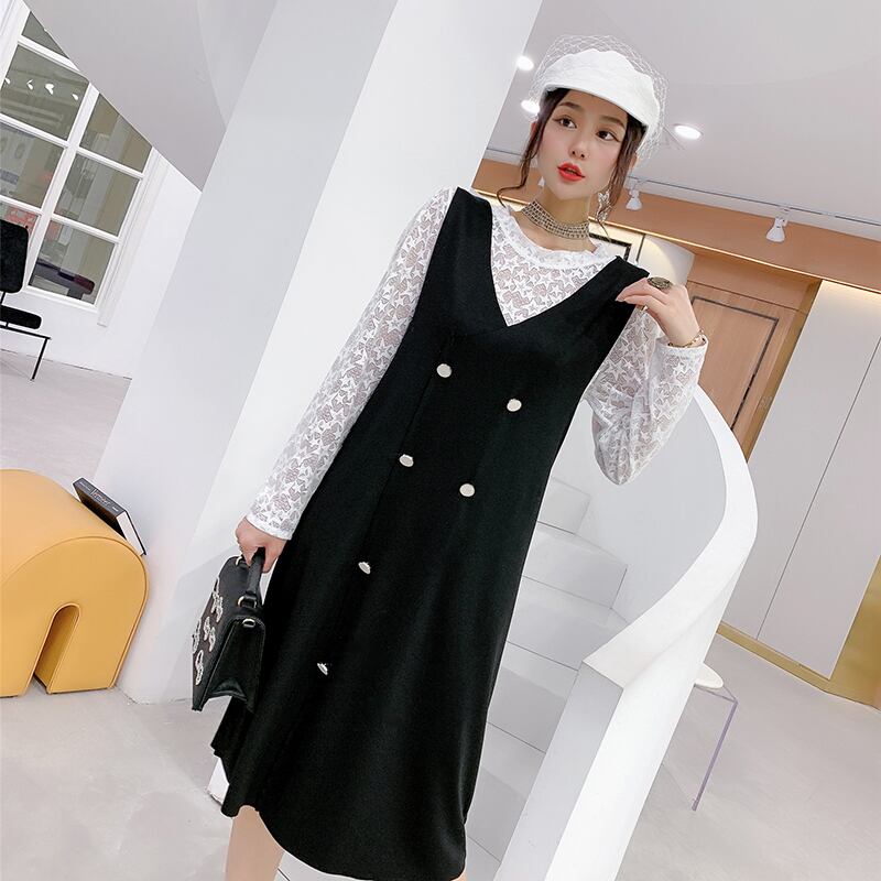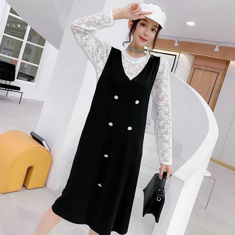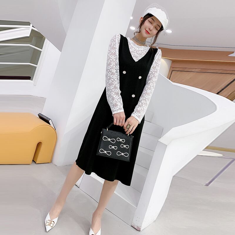 2020年秋の新しいスタイルの薄いウエスタンスタイルのツーピースのスーツのレースのTシャツドレス秋の脂肪mmプラスサイズの女性の服 ミックスインファッション40681073204