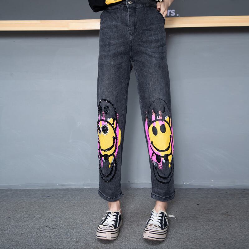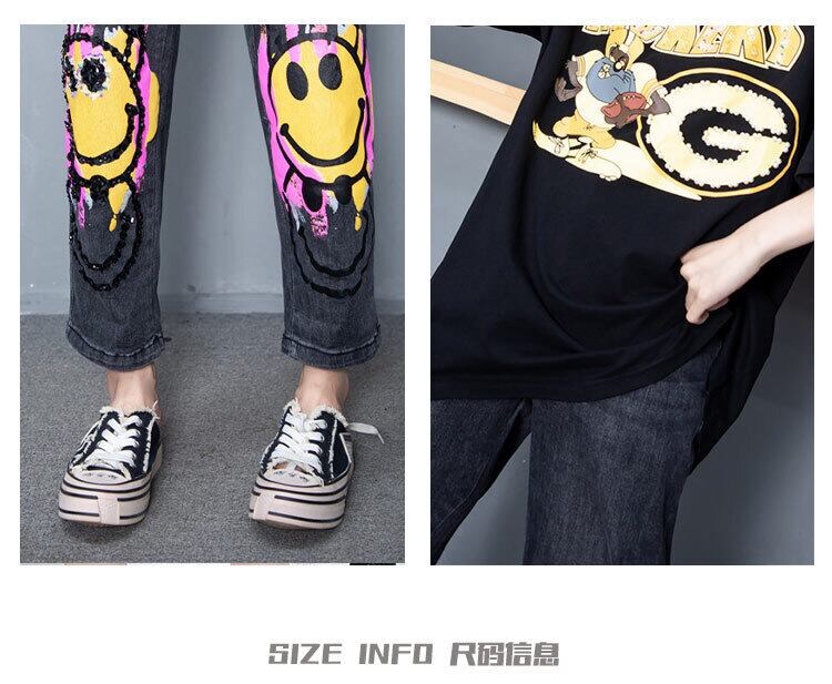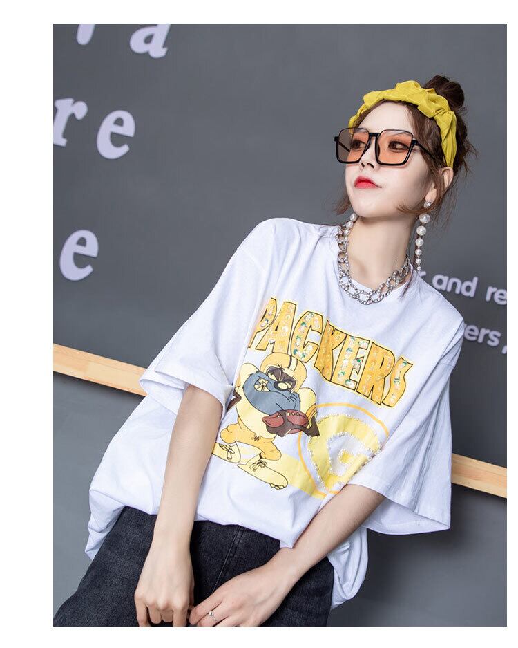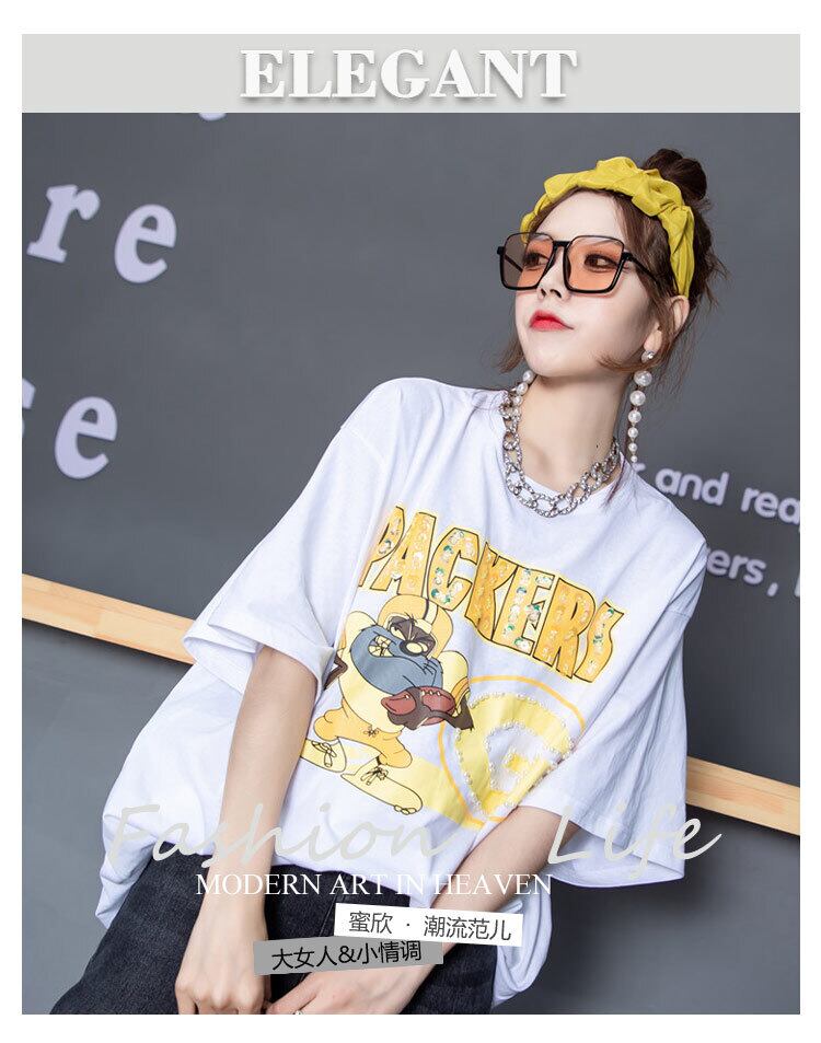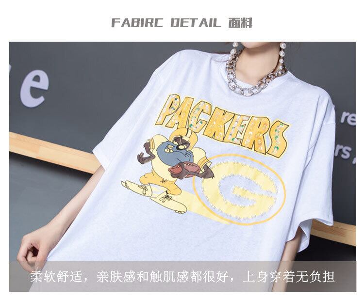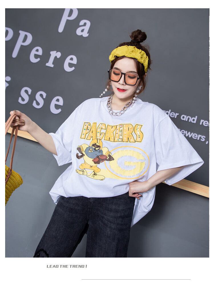 プラスサイズの女性の2020年の新しい秋のTシャツのスパンコールの文字は薄く、腹脂肪mmジーンズをカバーしています ミックスインファッション82194844500
