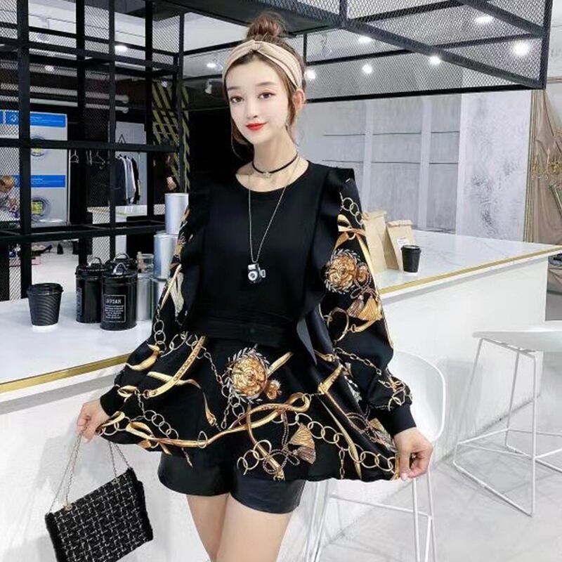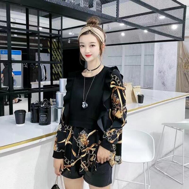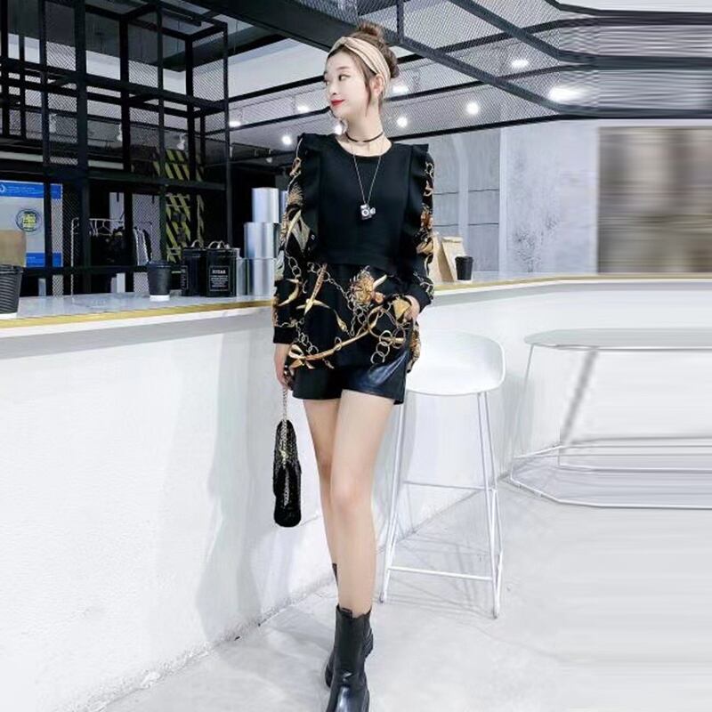 2020秋プラスサイズレディースウエスタンスタイルトップデザインセンス200kgファットMM薄手ラウンドネック長袖Tシャツシャツトレンド ミックスインファッション93091387110