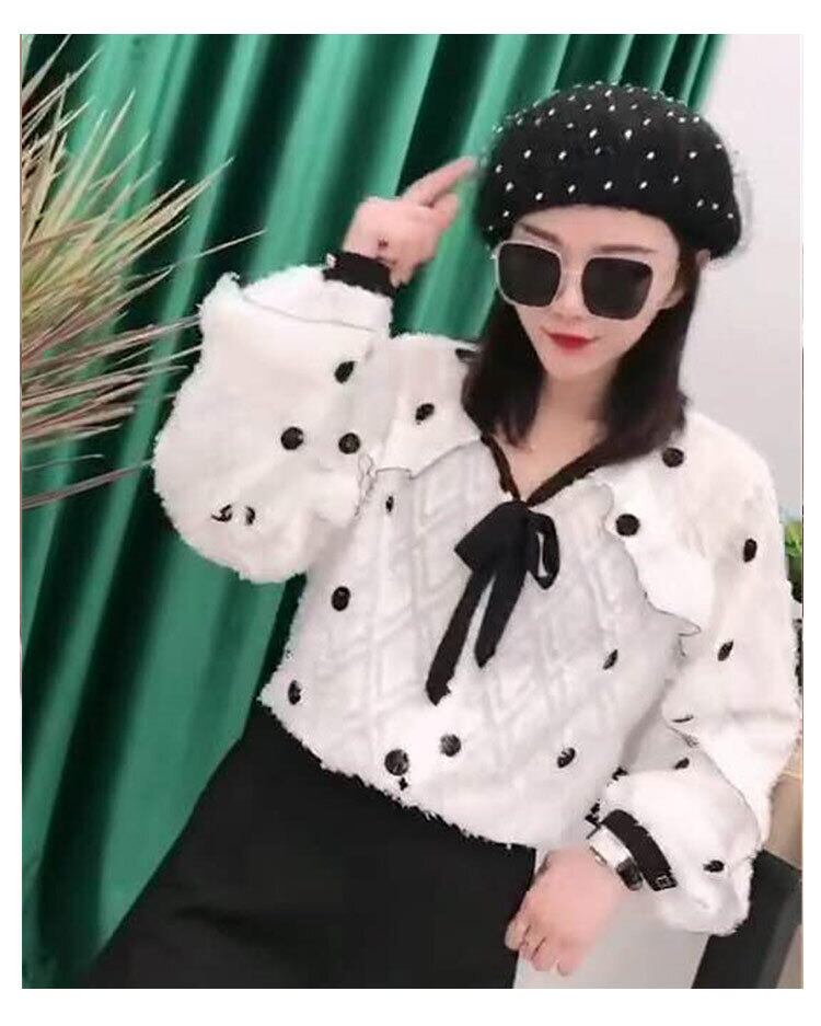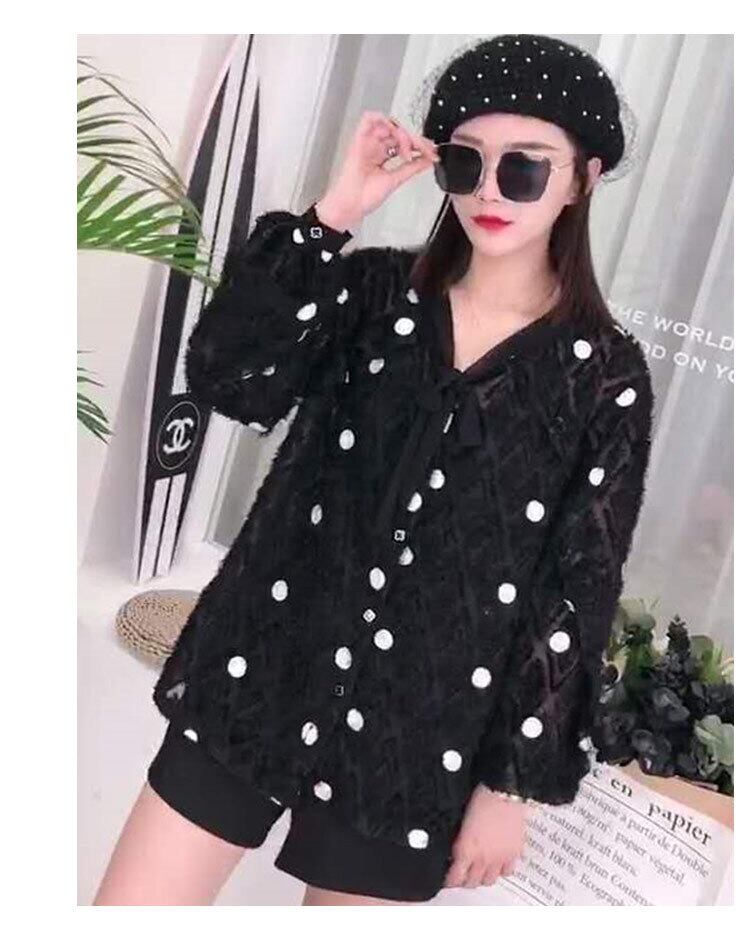 大きいサイズの秋のルーズオールマッチシャツ2020新しい脂肪MMプラス肥料プラス水玉トップボウ ミックスインファッション40654670877