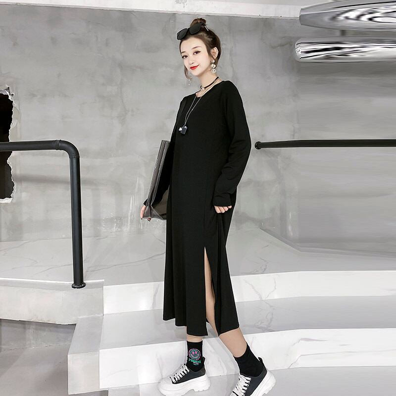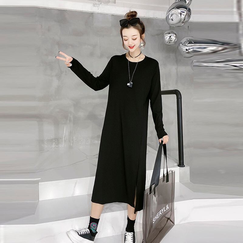 プラスサイズ婦人服2020新作秋200kgファットMM痩身ドレス女性サイドスリットファットシスター女性スカート ミックスインファッション90660458115