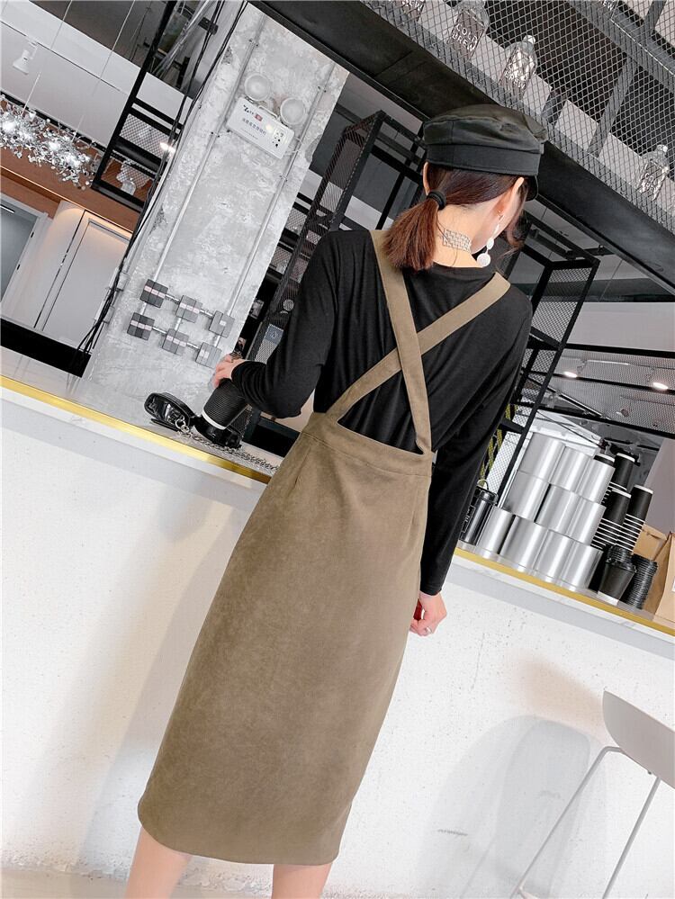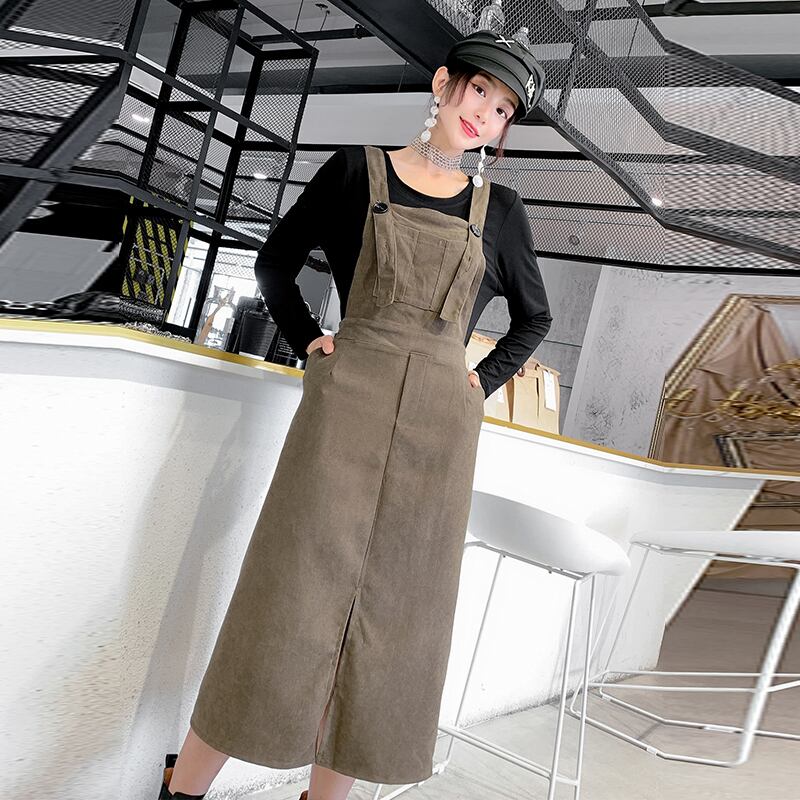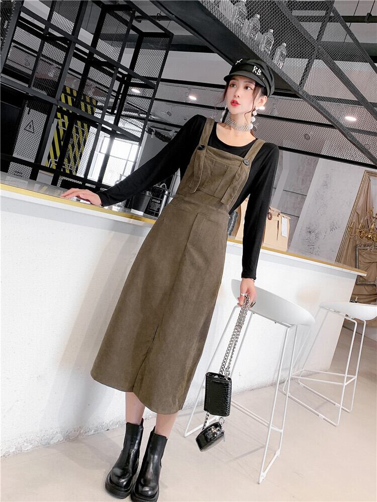 2020年秋冬新作洋風スリミングワンピースツーピーススーツファットmmプラスサイズレディースサスペンダースカート ミックスインファッション85145253213