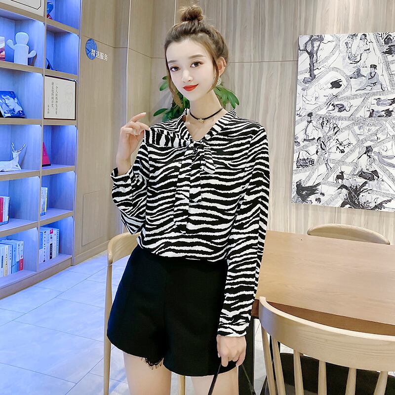 プラスサイズの女性の服2020秋の新しいファッションゼブラパターンウエスト痩身シャツ女性の脂肪の姉妹ウエスタンスタイルシャツトレンド ミックスインファッション49883251473