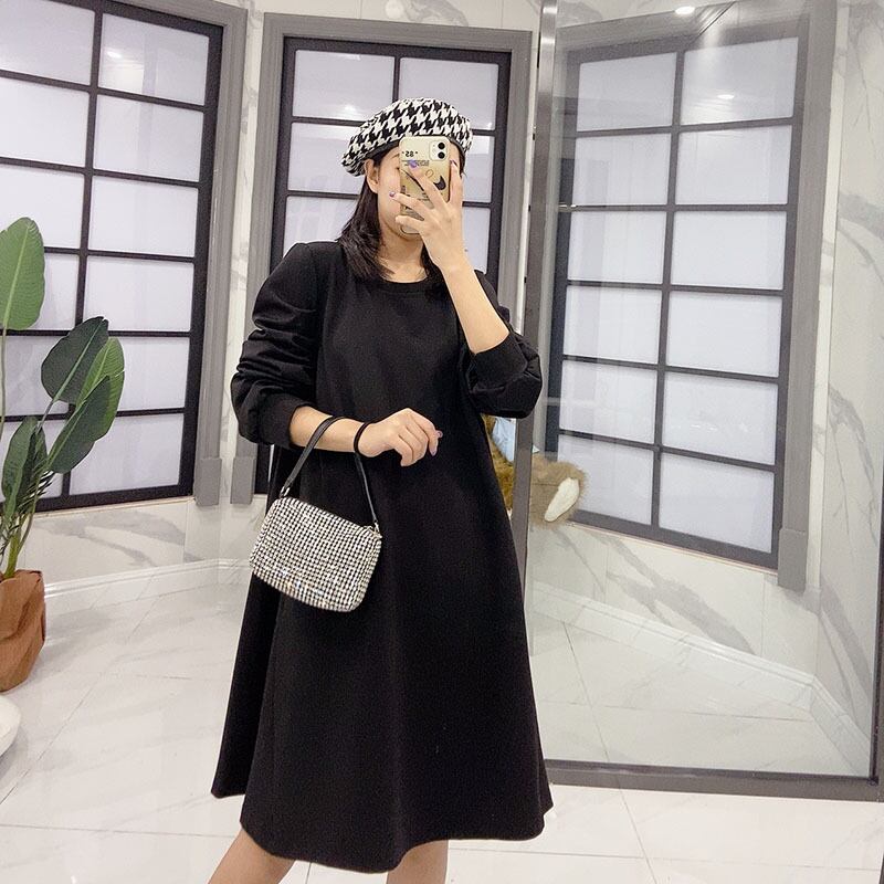 2020新しい秋のプラスサイズの女性の脂肪mmフレンチスタイルカバー腹スリム痩身ミドル丈ブラックドレス ミックスインファッション40738664894