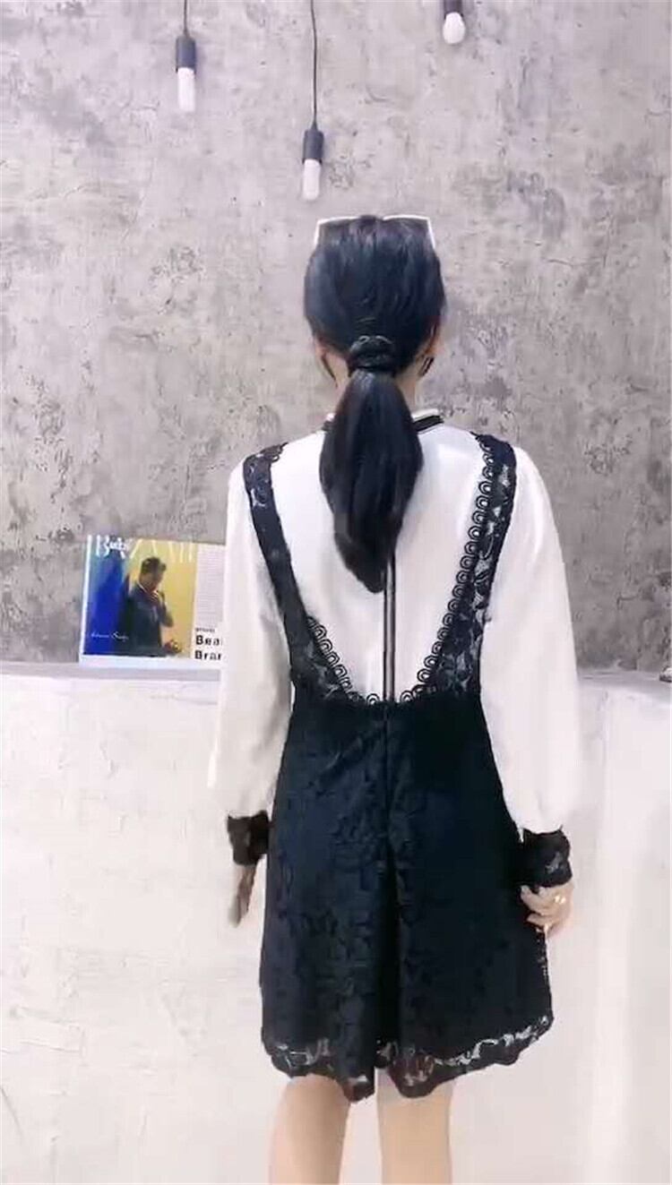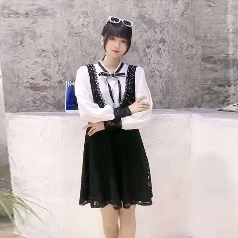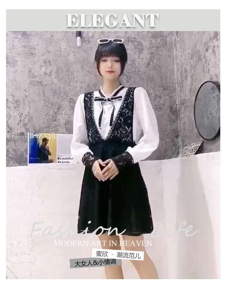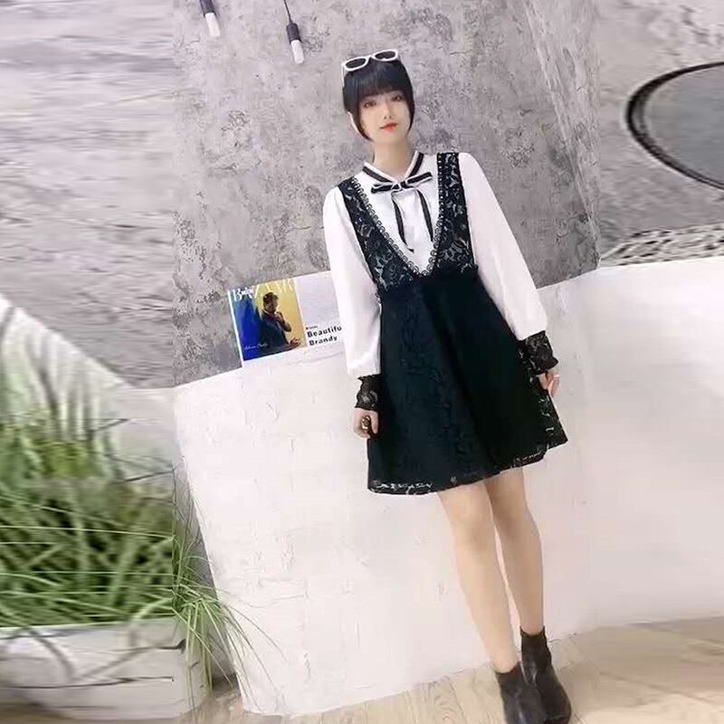プラスサイズの女性の2020年秋の新しいスタイルの脂肪の妹mmバタフライフェスティバルレース長袖Tシャツサスペンダースカートツーピーススーツ ミックスインファッション22932475726