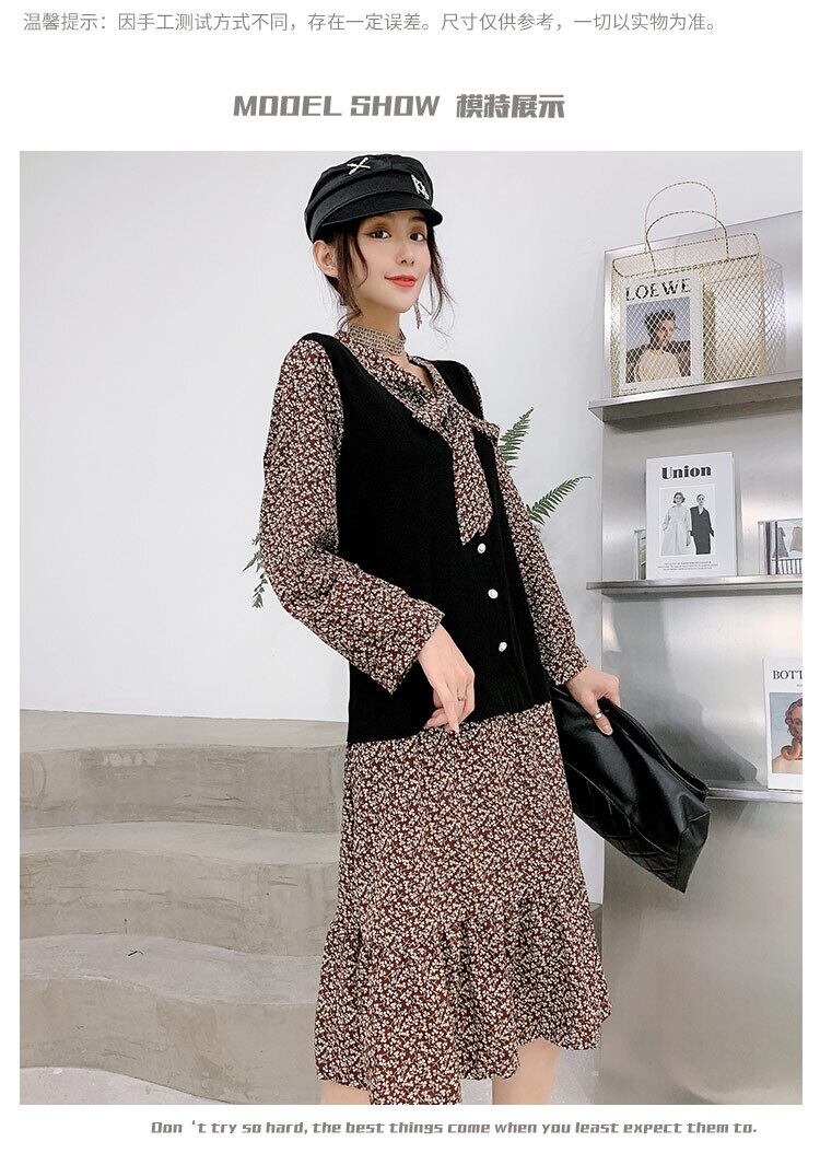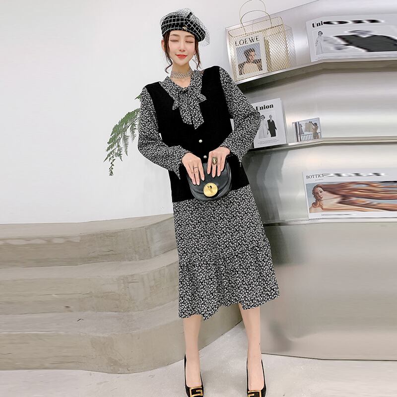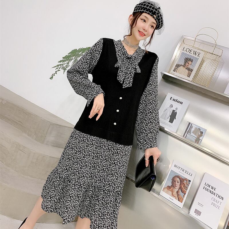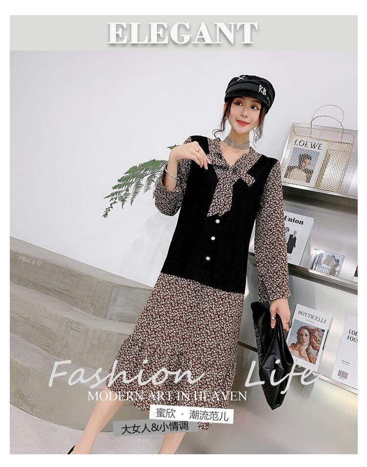 長袖ワンピースフェイクツーピーススーツ2020年秋新作プラスサイズ女性のファットミリスリミングと減量 ミックスインファッション39291518601