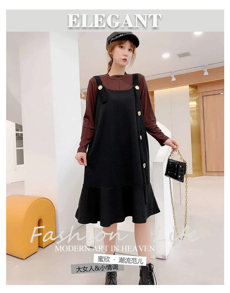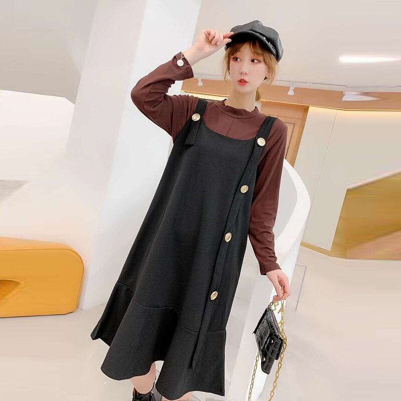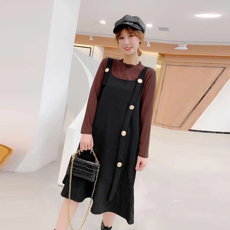 プラスサイズの女性の春と秋の服2020新しいファットシスターウエスタンスタイルの薄いドレスTシャツストラップツーピーススーツ ミックスインファッション49460211221